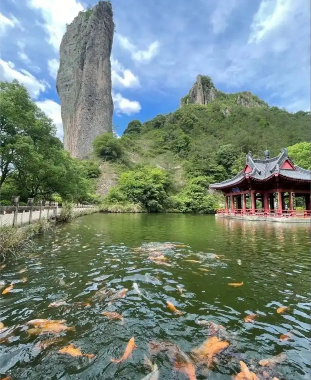 - 鼎湖峰:仙都的核心景点,有“天下第一峰”“天下第一笋”的称号,高170.8米。旁边的黄帝祠宇是南方祭祀轩辕黄帝的中心,每年在此举办黄帝祭典。可乘坐索道上山,在步虚亭俯瞰仙都全景。