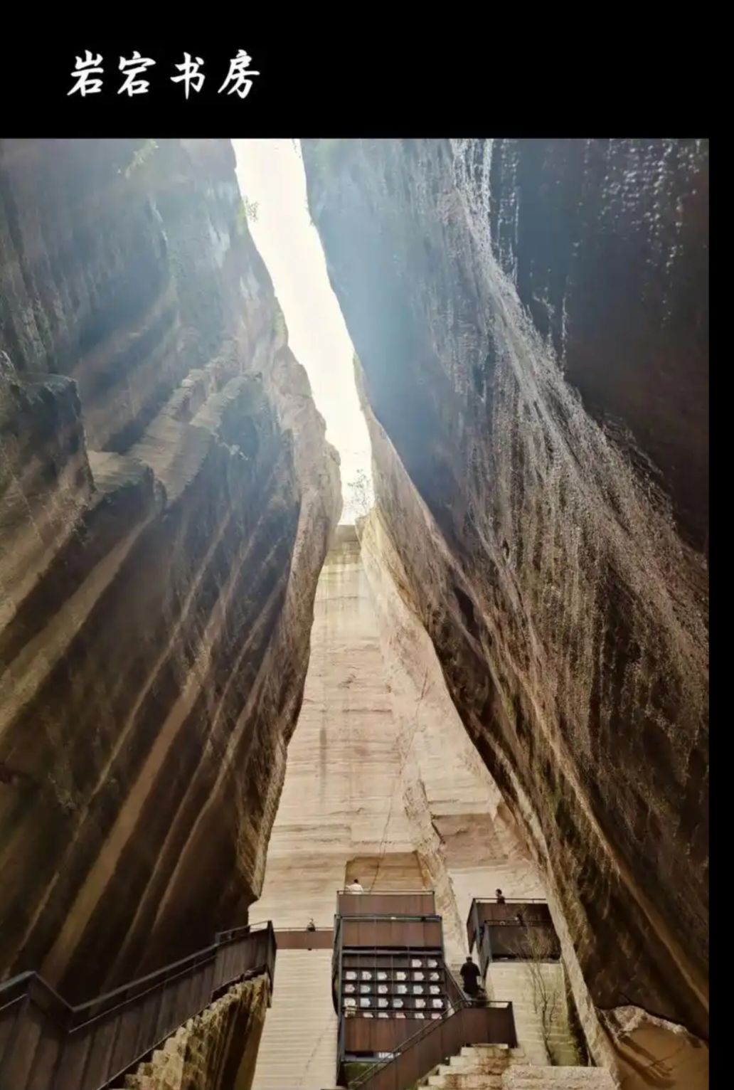 - 岩宕书房:由采石石窟改造而成,空间错落有致地摆放着书架书籍,阳光洒下拍照很出片。