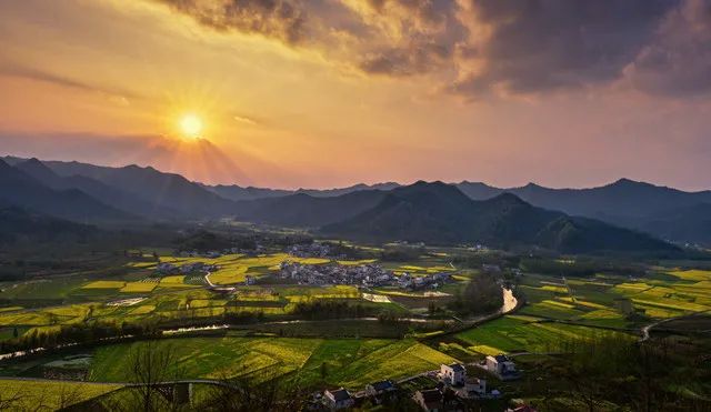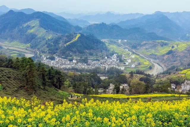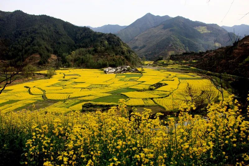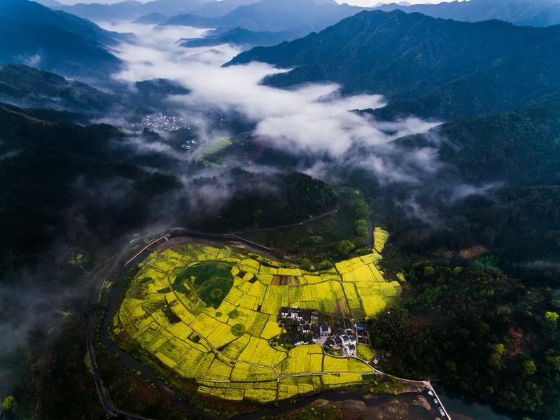 - **特色**:梯田油菜花与白墙黛瓦的徽派村落交相辉映,宛如水墨画。