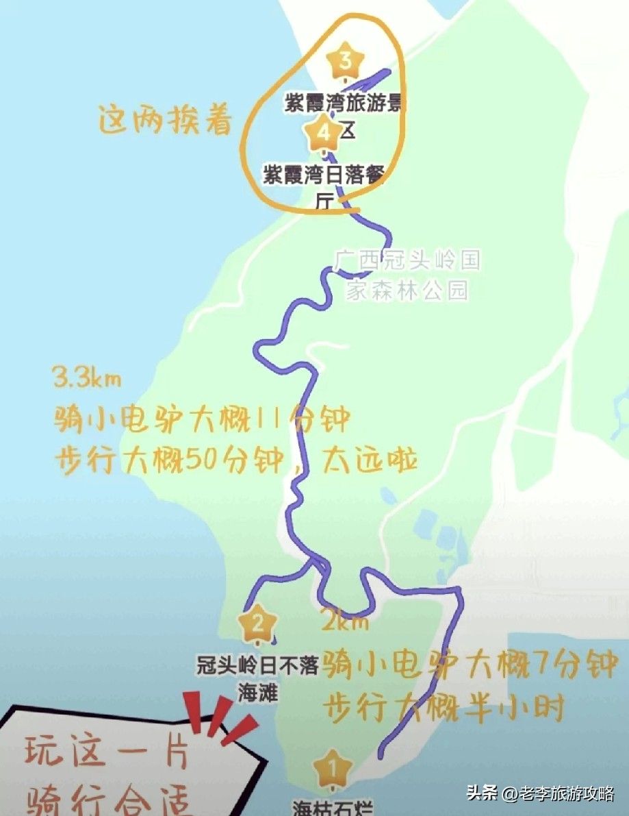从北海市区/北海站: 最推荐使用网约车(滴滴等)或出租车,直接导航至“冠头岭森林公园”或“冠头岭海滩(海枯石烂)”,车程约30分钟,费用约30-50元。