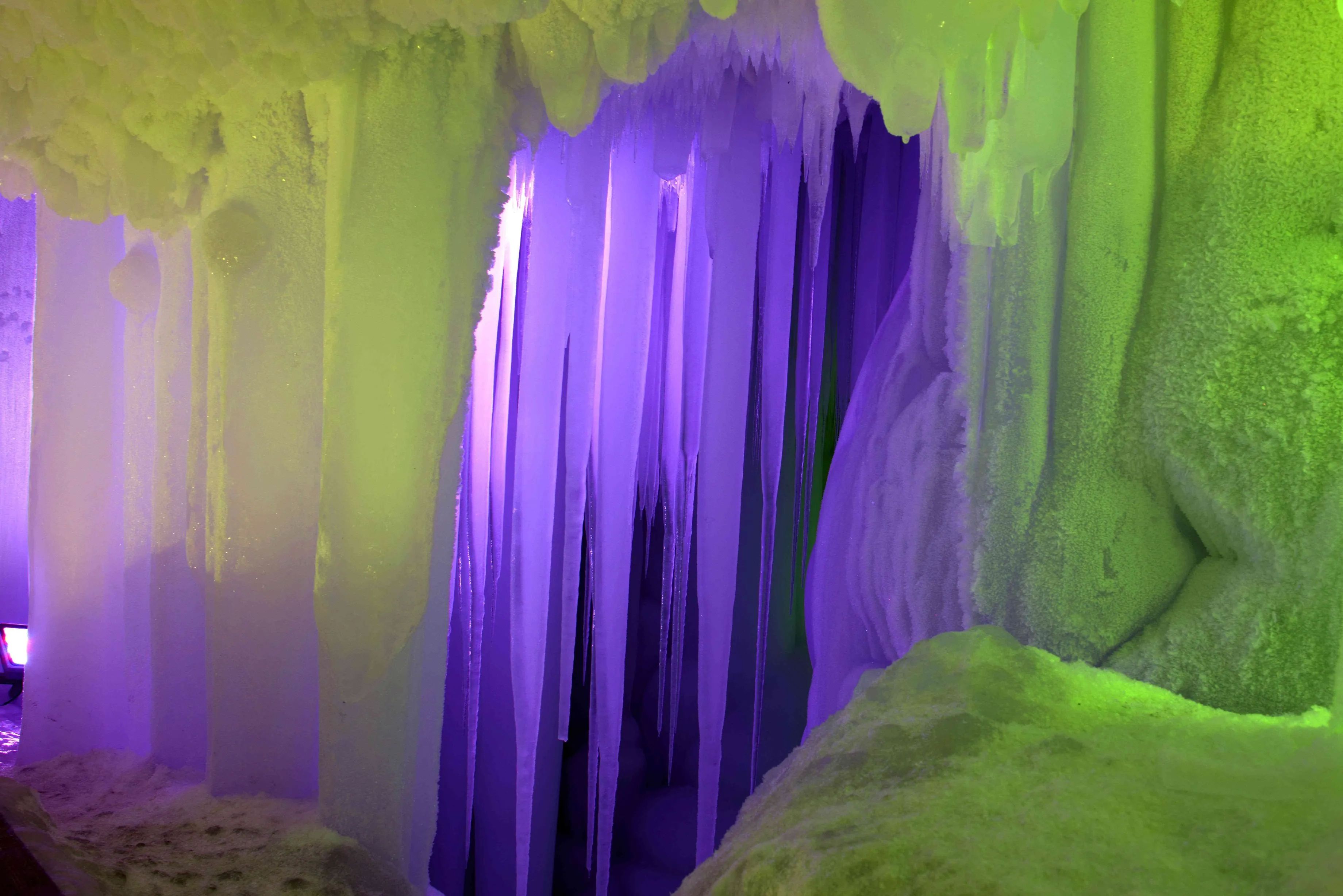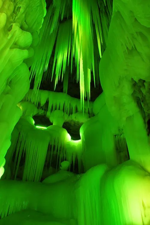 踏入冰洞,混合着矿物质与凝水汽的气息扑面而来,仿佛开启了一瓶封存万年的香槟。指尖轻触冰壁,瞬间留下体温融化的印记;30米高的冰瀑在五彩灯光下流转着蒂芙尼蓝,融冰滴落声与寒风掠过冰隙的低鸣,谱成一曲空灵的自然乐章。