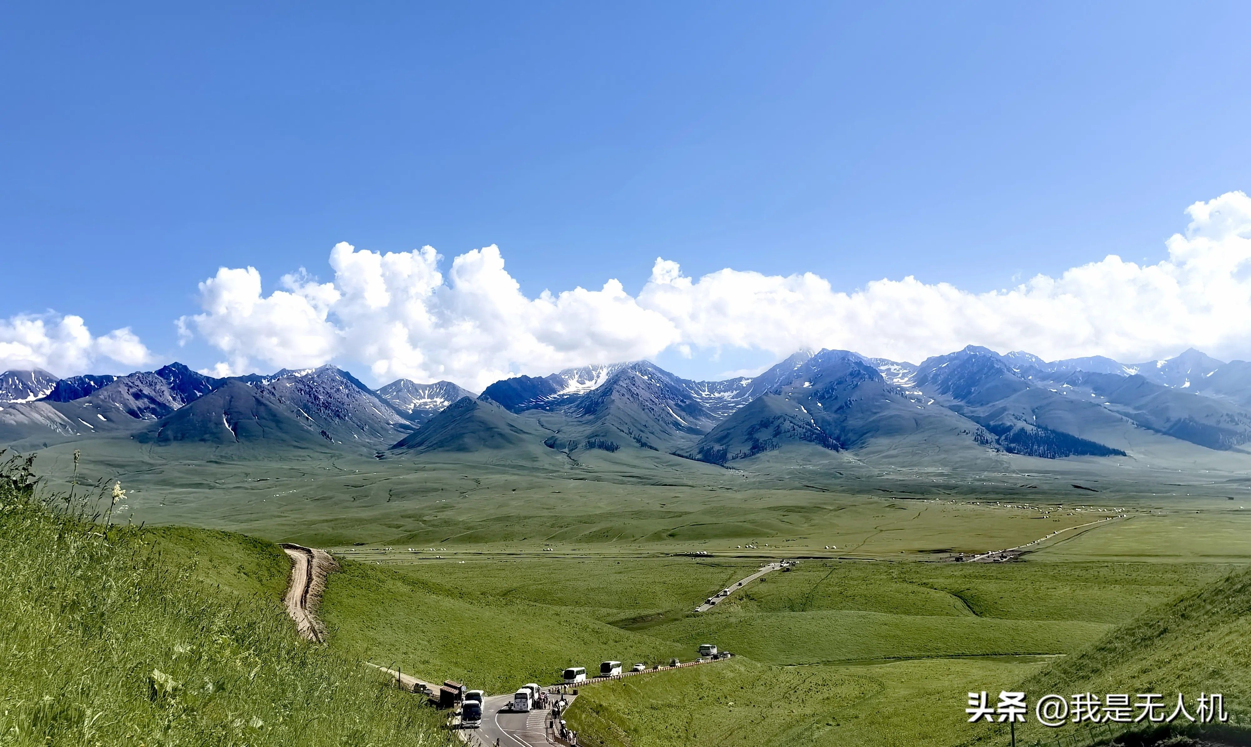 1、其他的草原旅游不用再去了!那拉提草原犹如雪山环抱的绿岛,气势弘大,连绵起伏的山丘,平坦广阔的草甸,雪山森林、野花溪流、牛羊漫坡,可游览线路多样,玩法丰富。