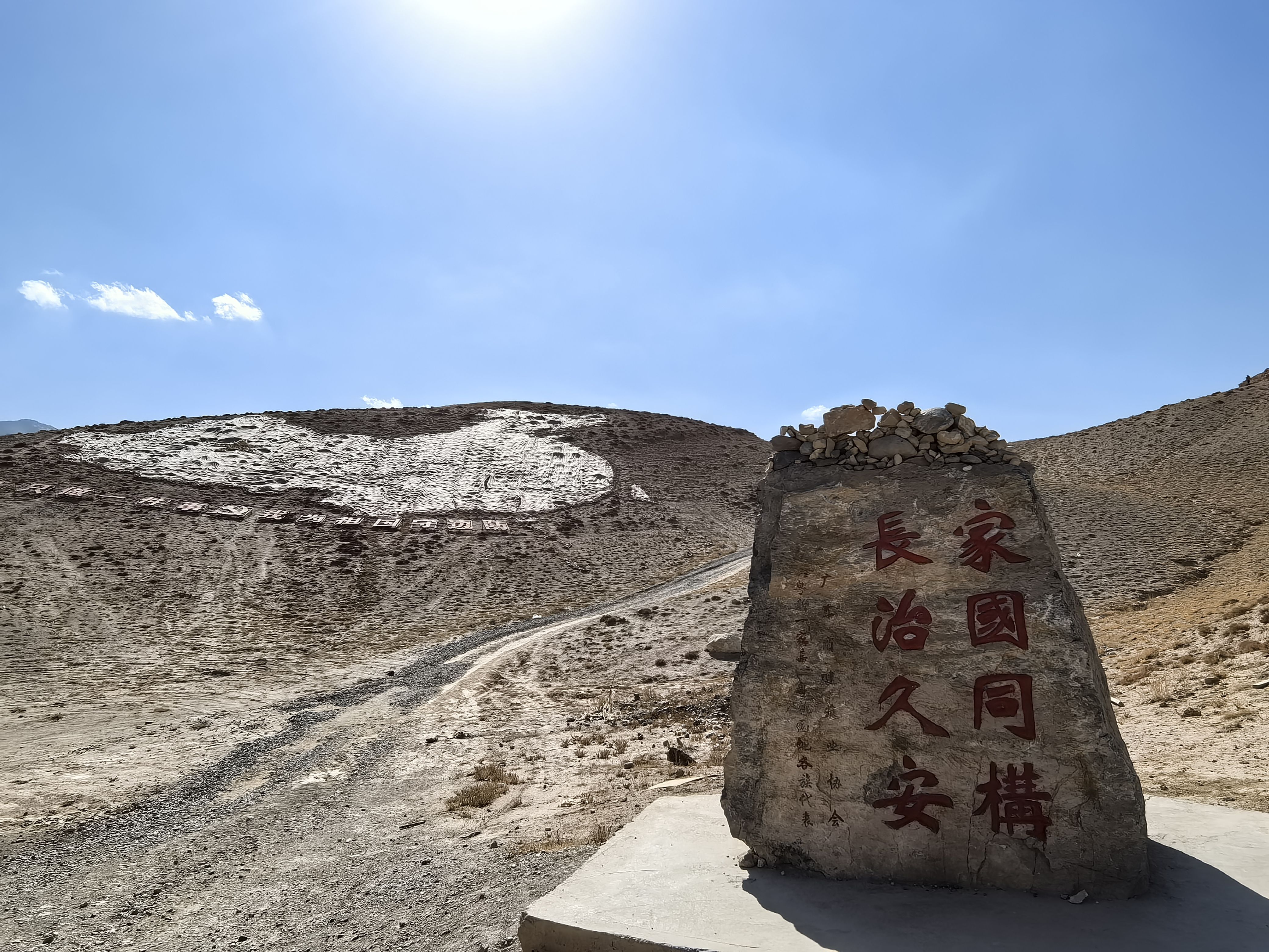 上到山上,高大的石碑威严的耸立在眼前,上面刻有中国西极字样,碑文上写着“一生只做一件事,我为祖国守边防”,四周的五星红旗迎风飘扬,看了让人觉得非常震撼。