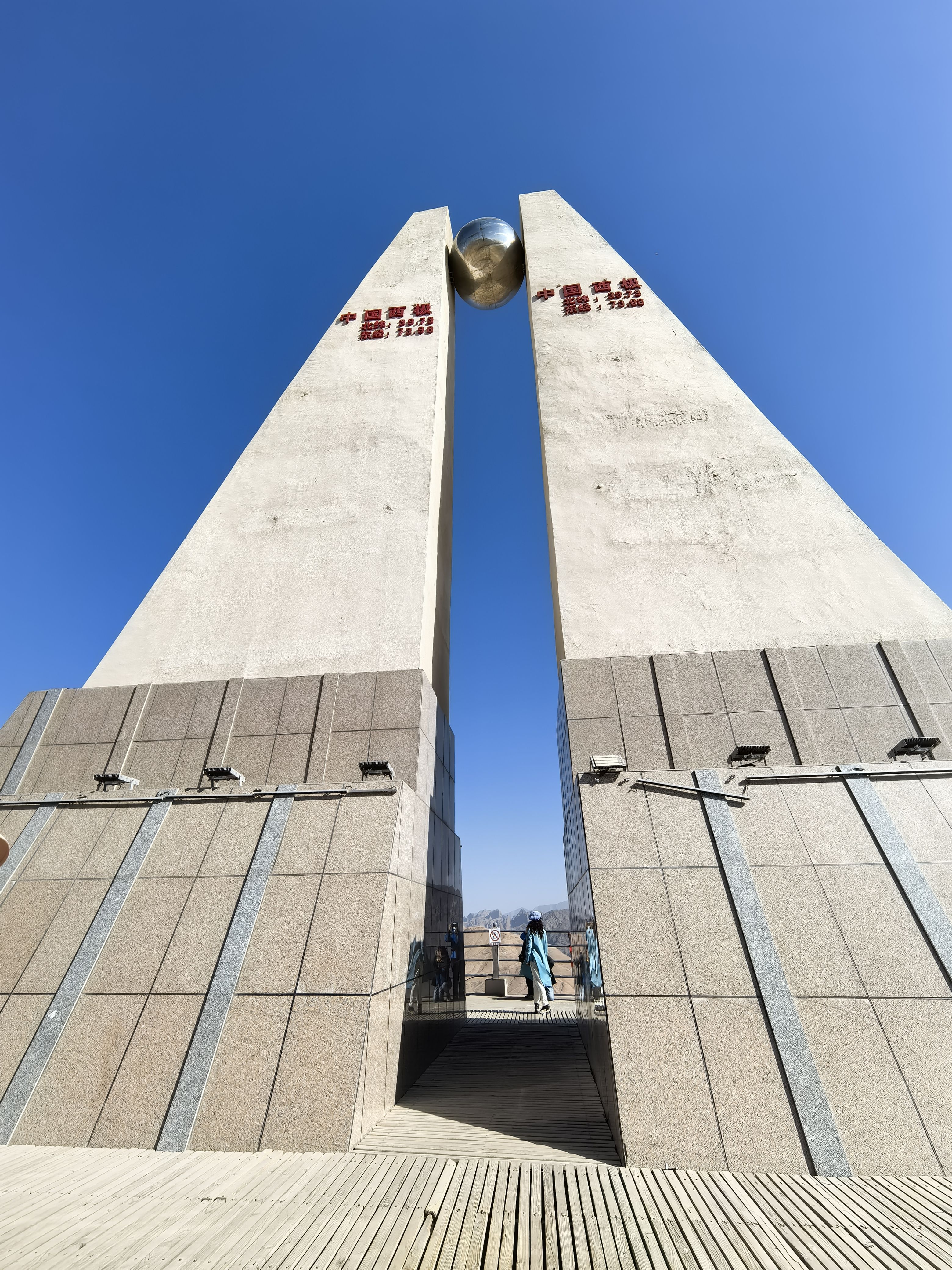 中国西极石碑位于新疆乌恰县,在喀什的西北方向大约两百多公里,是中国陆地最西端的地理标志性建筑,象征着祖国最后一缕阳光落下的地方。