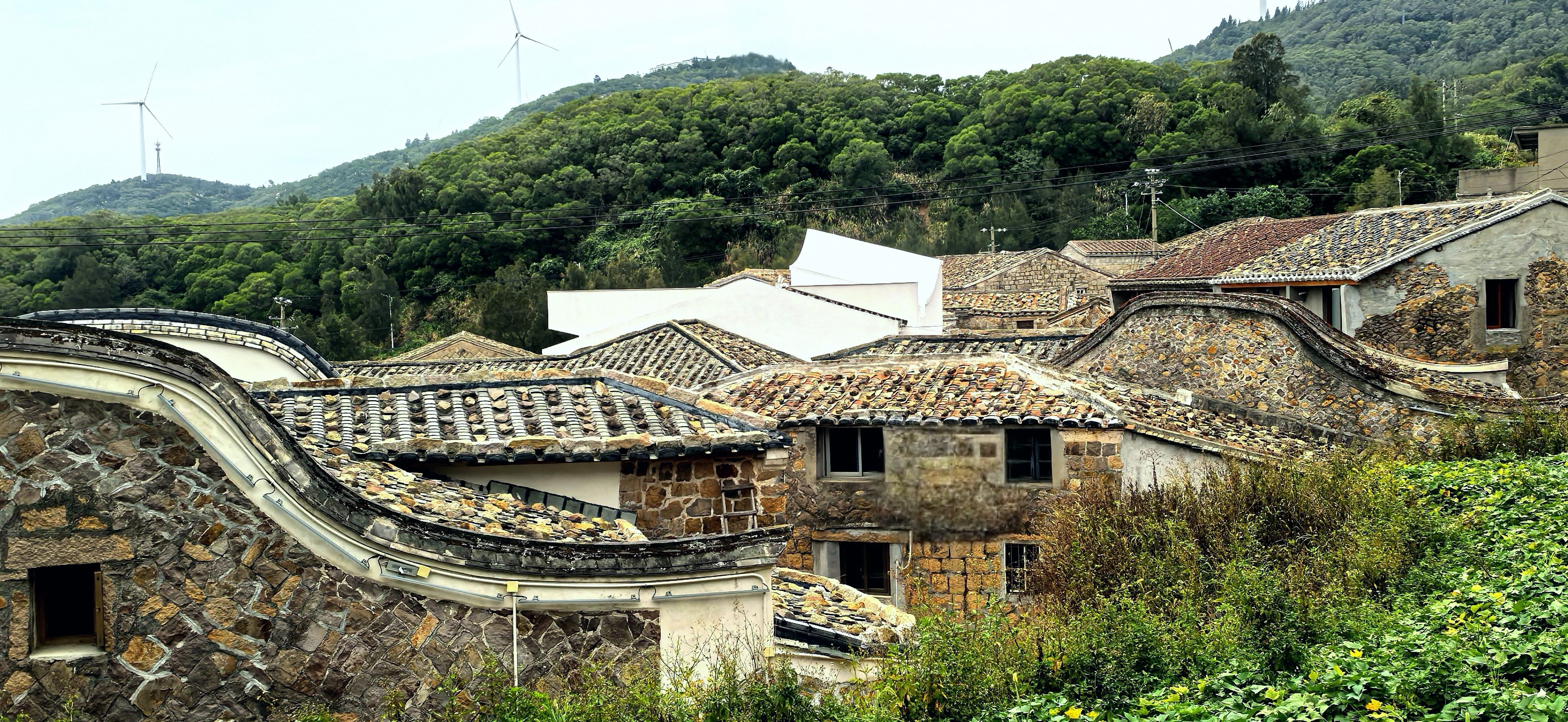 古石村是连江黄岐半岛东北端,是一座依山傍海的“海崖村落”。村庄始建于1713年,距今已有300多年历史。村内有近百幢用花岗岩建造的石厝,具有闽东传统建筑风貌。其马鞍墙的房屋,与高大的风力发电塔形成了一道独特的人文风景线。