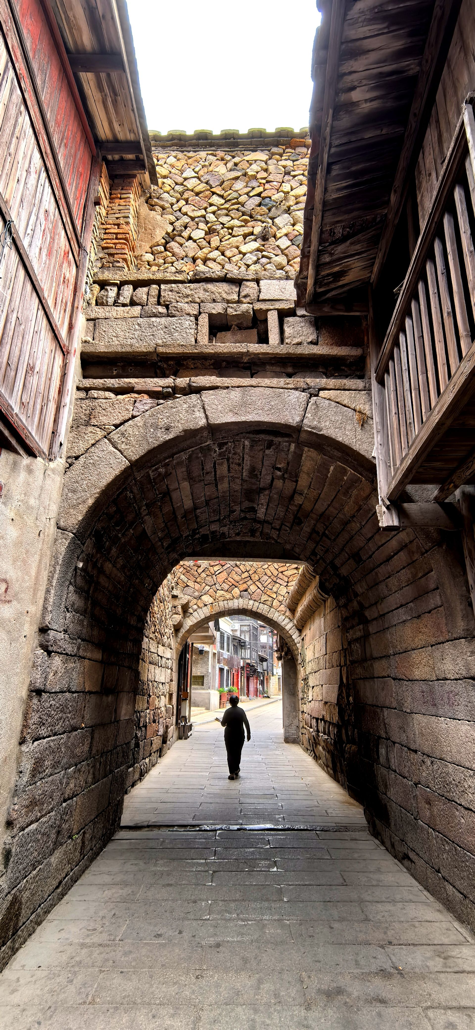 定海古城坐落于连江县筱埕镇定海村。素有“闽江北喉”之称,是古代海上丝绸之路的重要节点。现存临海古城墙长500米,高8米,宽6米,由花岗石条砌成。南城门设计独特,正中无门,左侧西向开“三重门”(三道拱洞),匾额刻有“会城重镇”,以迷惑外敌增强防御。