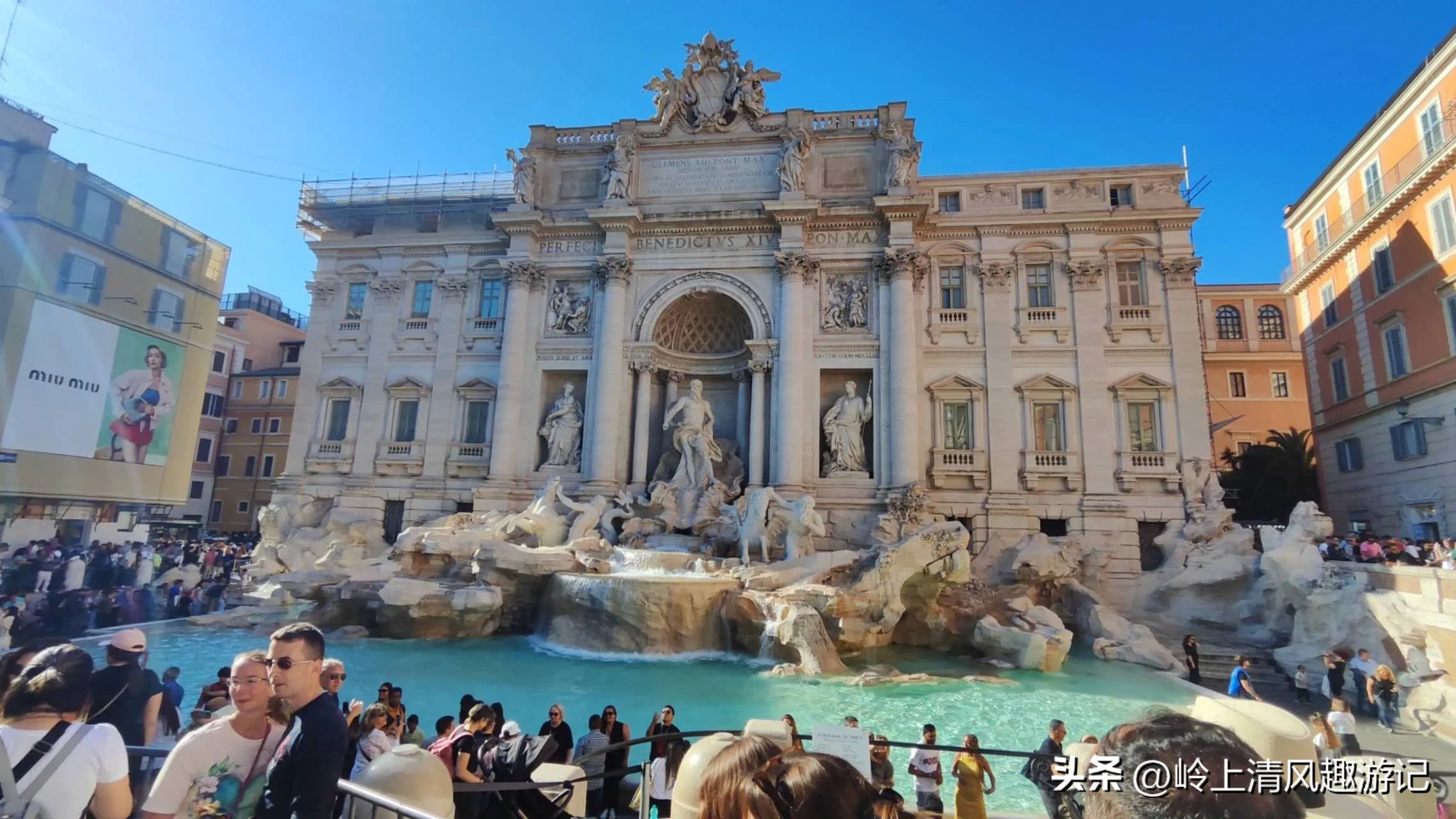 5.特雷维喷泉(图11,又称许愿池),巴洛克式杰作,传说投币许愿可重返罗马。在这里导游向大家每人赠送了一支奥黛丽·赫本在影片中吃的百年同款冰激凌。