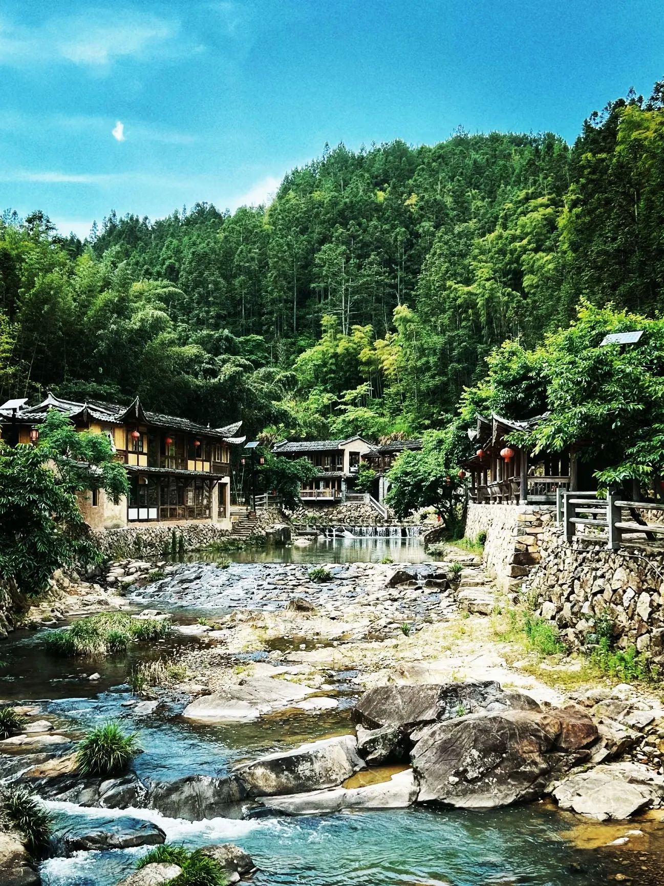 明清古厝依山傍水,青石板路、雕花门窗老宅、先锋书店、稻田窗景、扎染手作体验、周末文艺市集,感受新旧交融的慢生活。