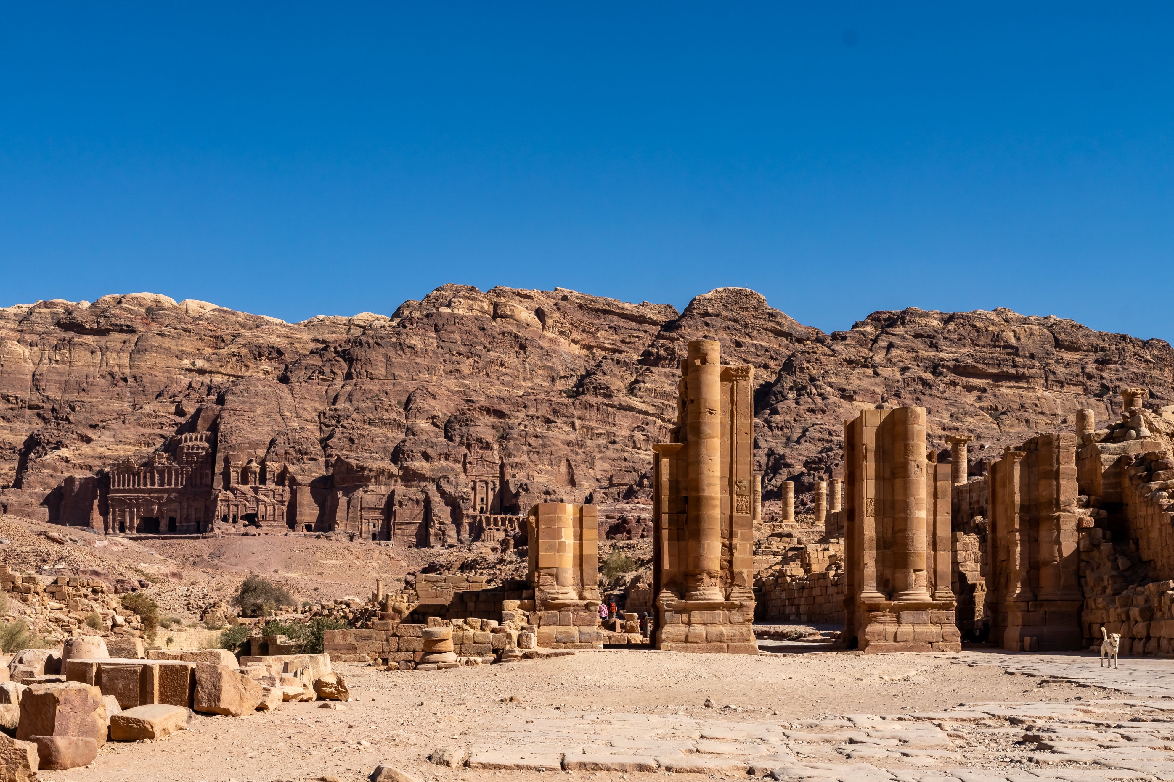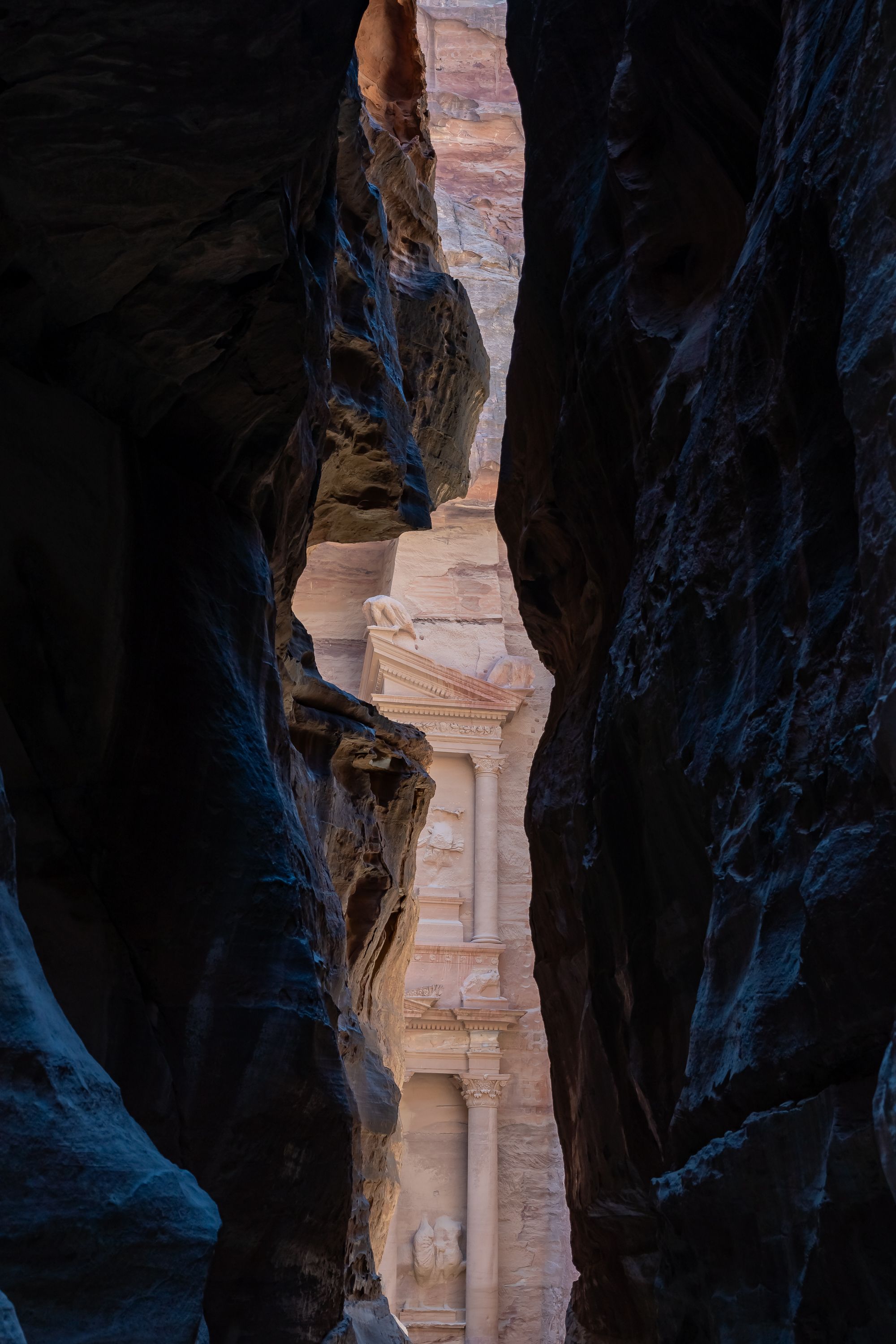 佩特拉最初阿拉伯人的一支,从公元前6世纪开始修。最大的特点就是整个城市都是藏在丹霞石峰之内,主要公共建筑直接开凿在崖壁上,而民居就在山上的石洞穴内,很另类。而公元1世纪这里被罗马占领后,建筑又加入了大量的罗马元素。