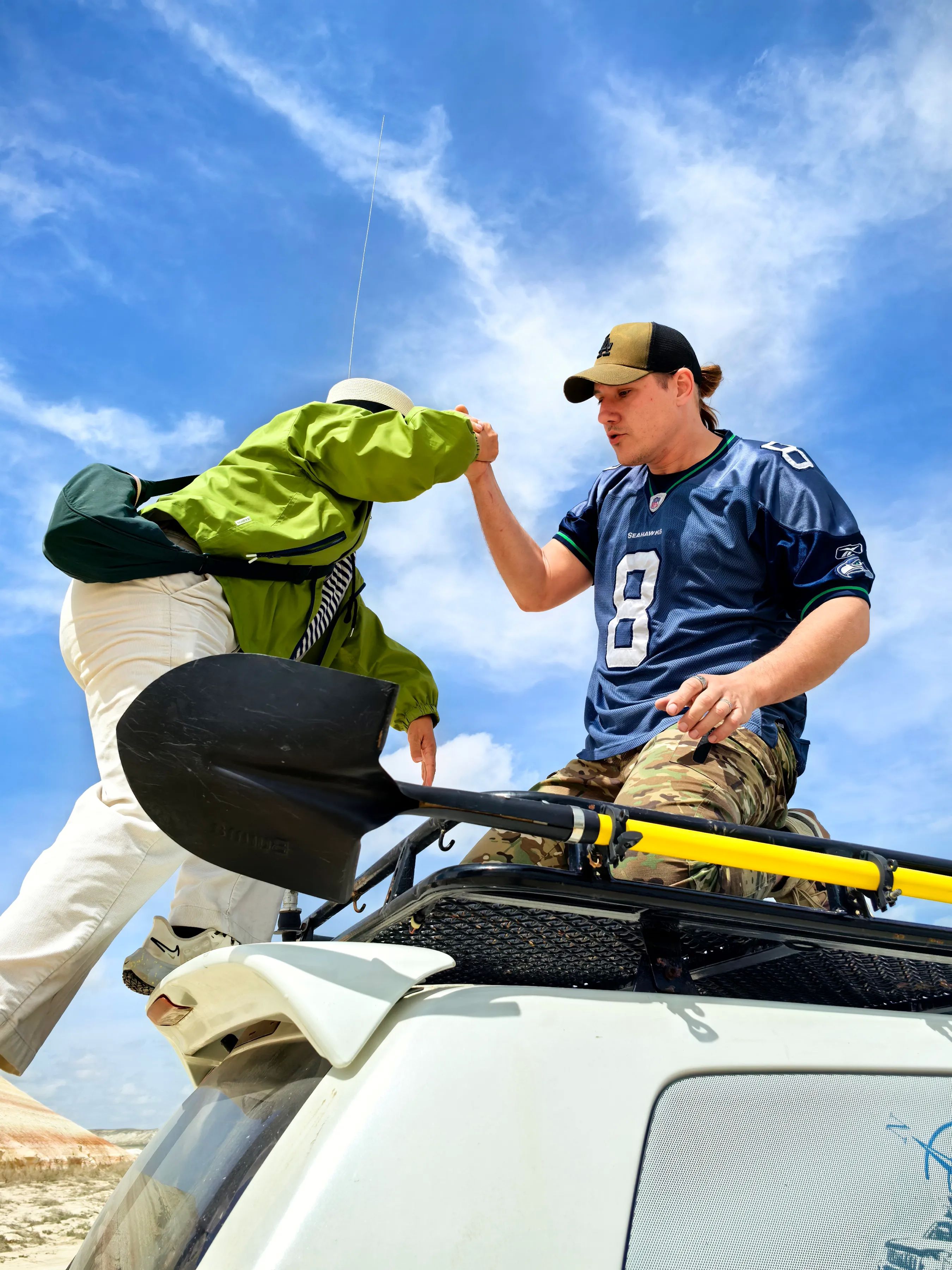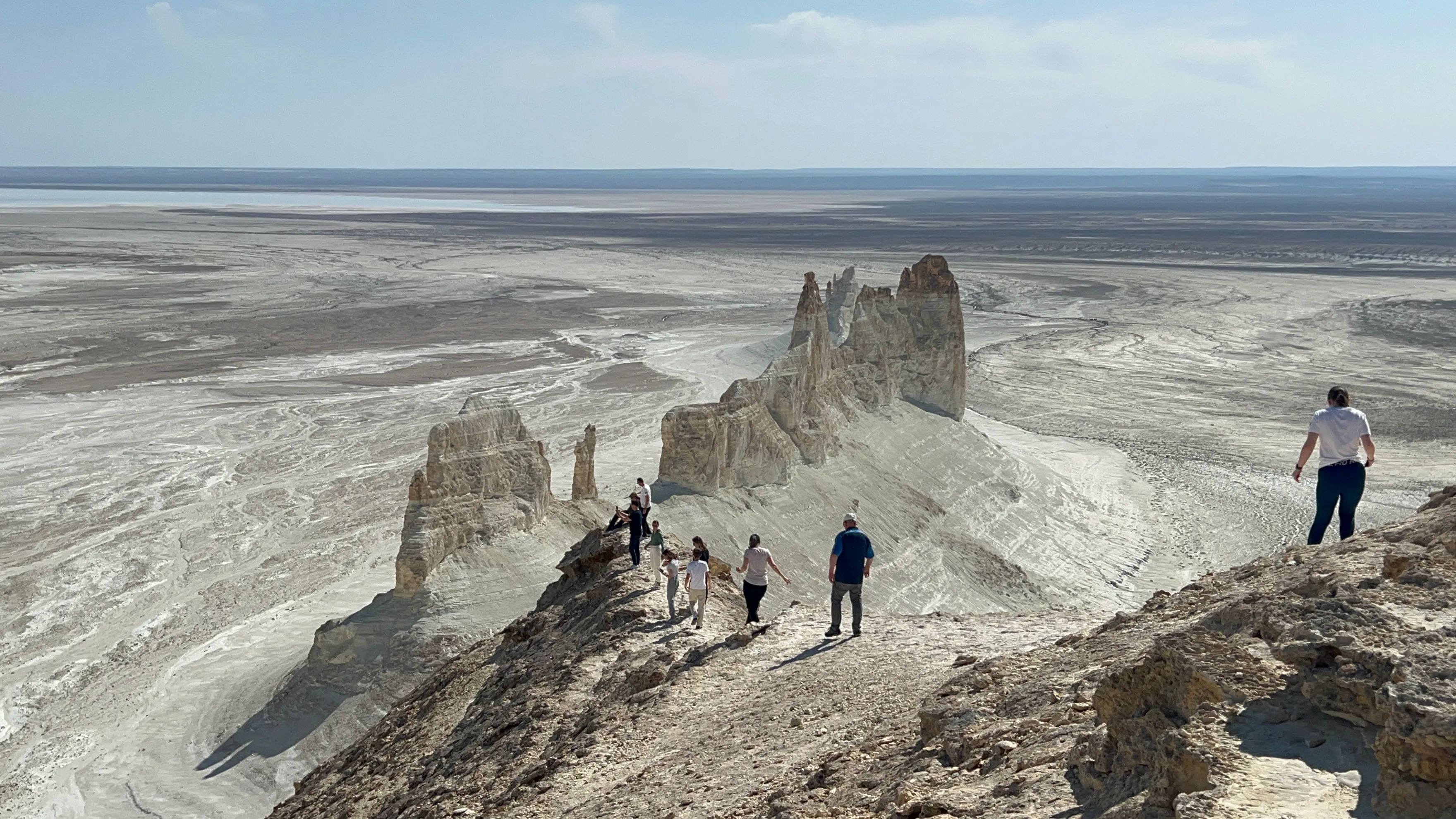 1. 卡拉吉耶洼地(Karagiye Depression):在上方观景平台拍照。位于哈萨克斯坦西部的乌斯秋尔特高原,阿克套市东南55公里处,是中亚和前苏联地区的最低点,海拔为-132米。其宽度超过20公里,长度至少40公里。