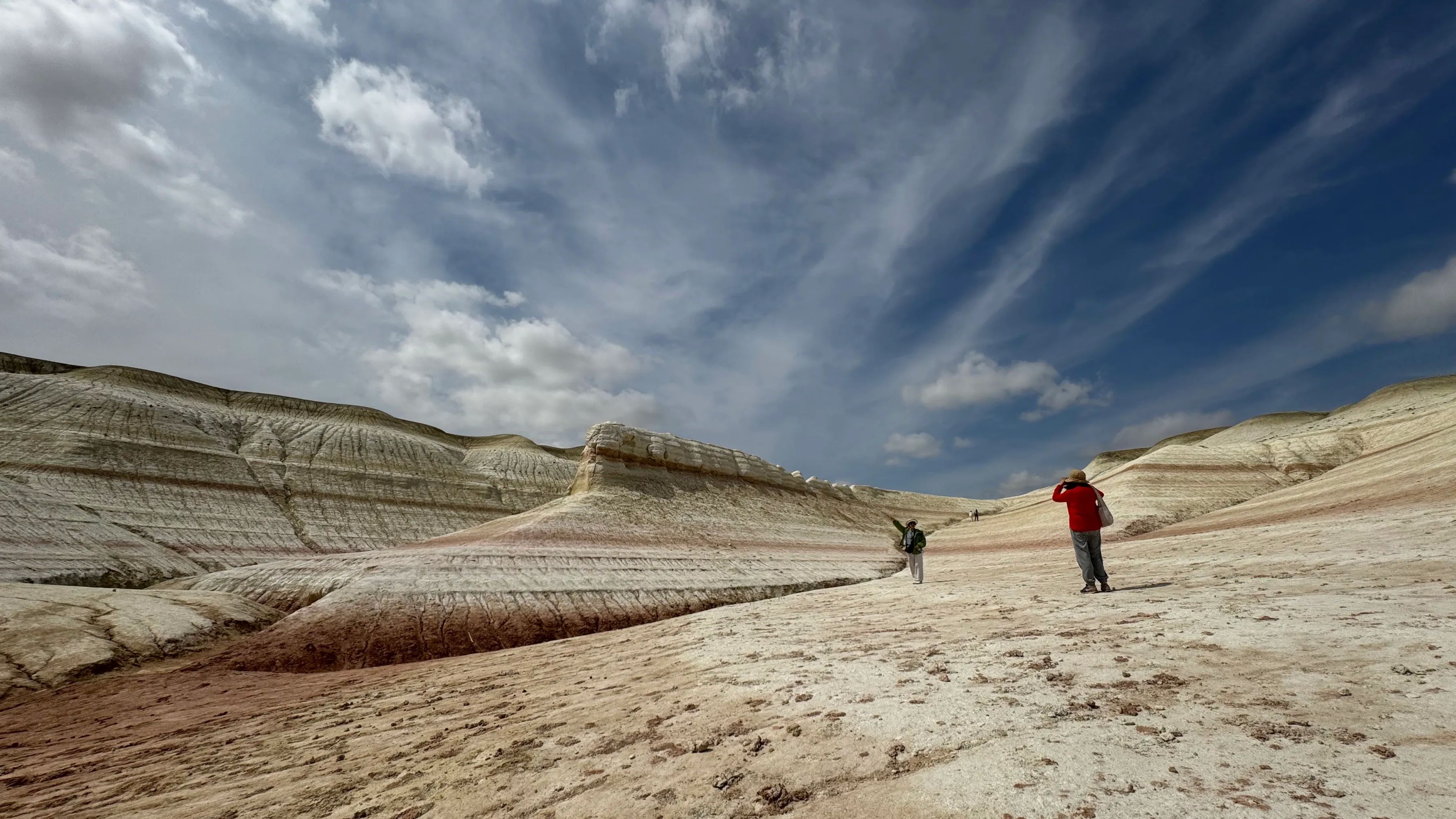 2. 克孜勒库普(Kyzyl Kup):是由 "ruchet粘土”构成的山中行走,这个地方也被称为“提拉米苏"。它是哈萨克斯坦一处独特的自然景观,因其外观类似提拉米苏而得名。位于哈萨克斯坦阿克套市附近。