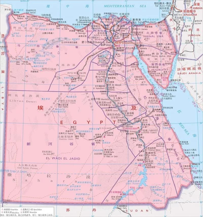 埃及:地跨非亚两洲的北非国家。历史悠久。面积 100.2万平方公里。人口1.04亿,阿拉伯人占90%, 信伊斯兰教。首都开罗。地势平坦,干燥少雨,国土96%为荒 漠、半荒漠。尼罗河纵贯全境,河谷地带和三角洲地区为主要 农业区。有石油、磷酸盐等矿。石油、运河、旅游、侨汇为经 济的重要支柱。灌溉农业发达,以长绒棉最为著名。境内的苏 伊士运河为最重要的国际通航运河。