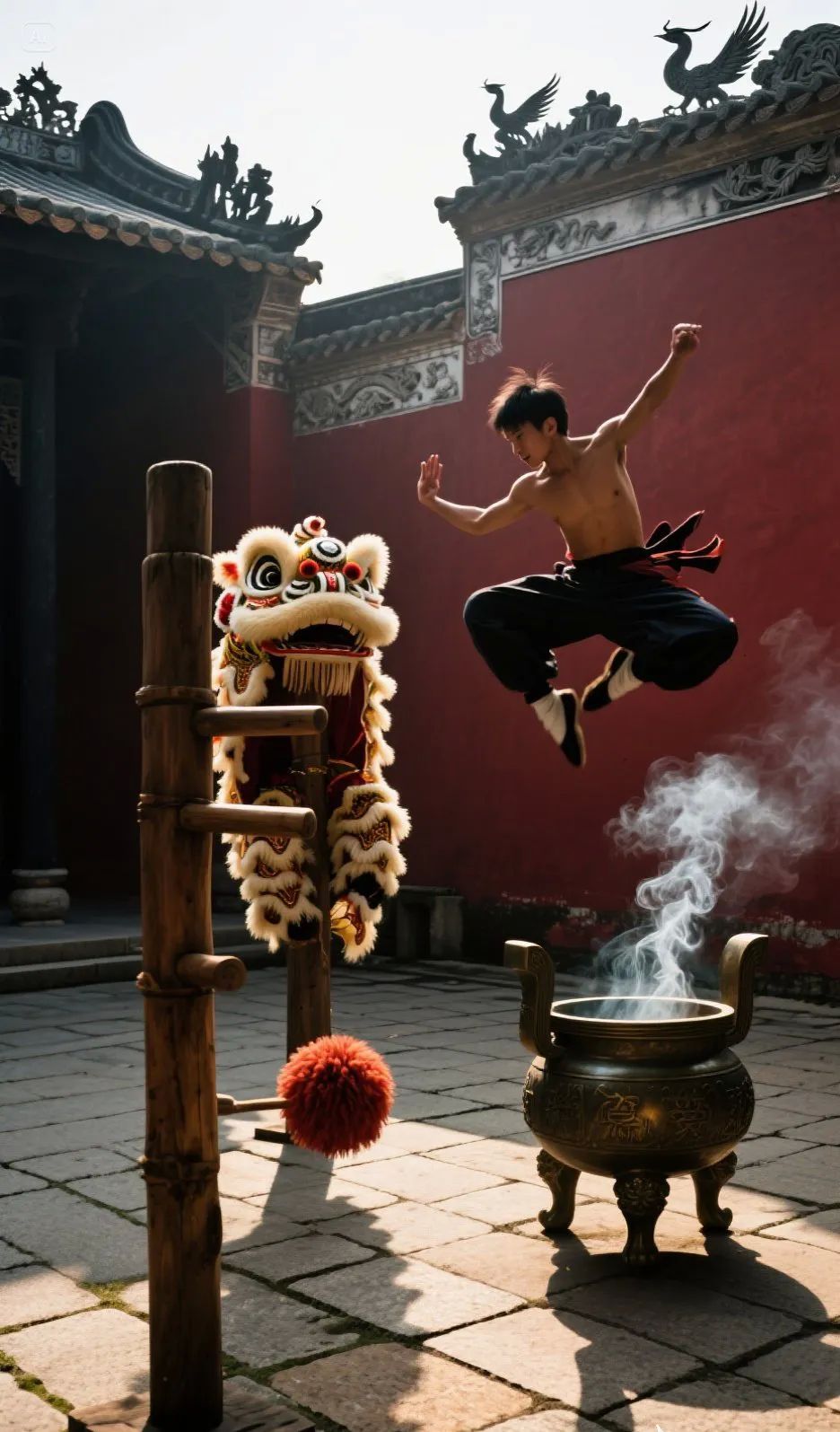 叶问堂的木人桩静立如禅,黄飞鸿纪念馆的狮头却跃跃欲试。当暮色漫过镬耳山墙,习武少年们的呼喝声惊起檐角灰塑凤凰,振翅时抖落几粒明代烧制的琉璃眼珠,正巧滚进游客惊叹的镜头里。