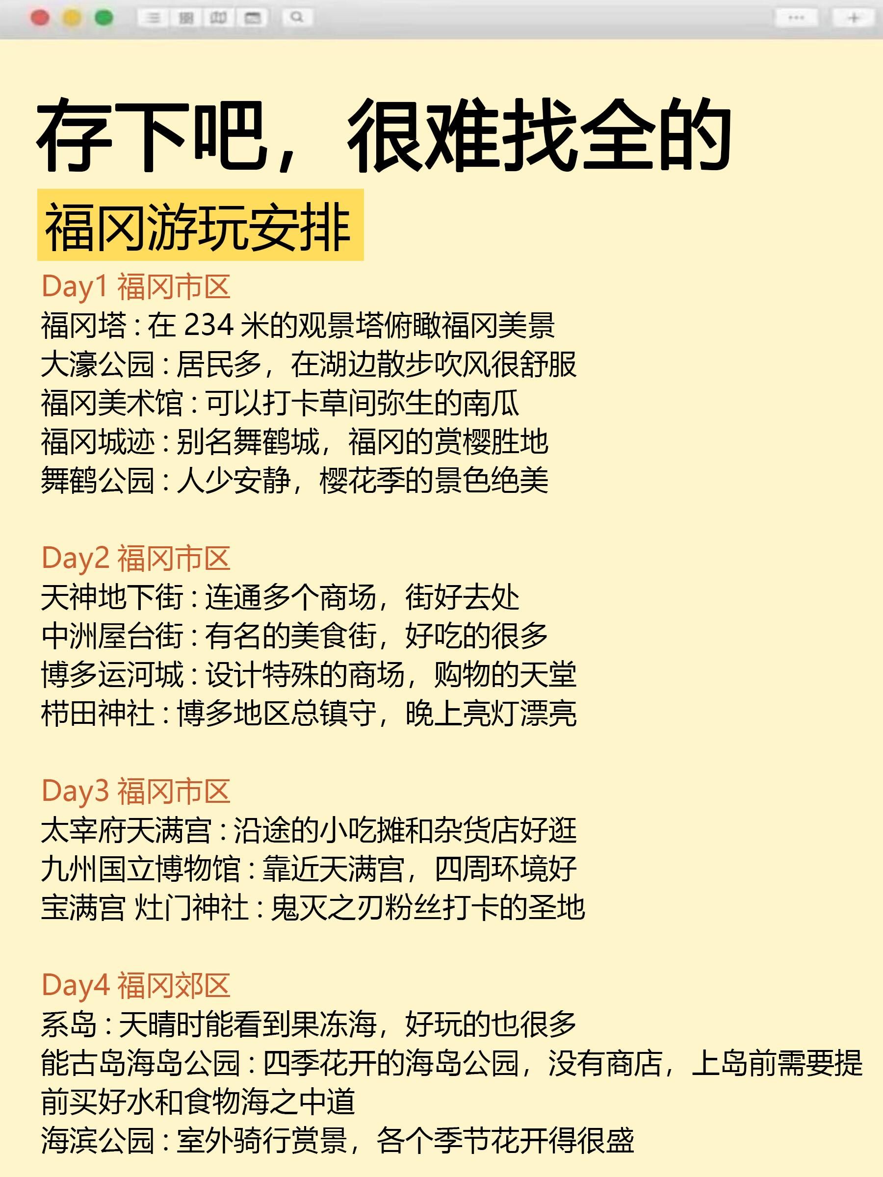 10—11计划去福冈旅行的宝子们,特地为你们更新了这份超全攻略,真的快快收好!都是实践出来的经验,带你轻松解锁福冈必打卡景点、避坑要点和交通诀窍,希望小宝们可以玩得开心呀!