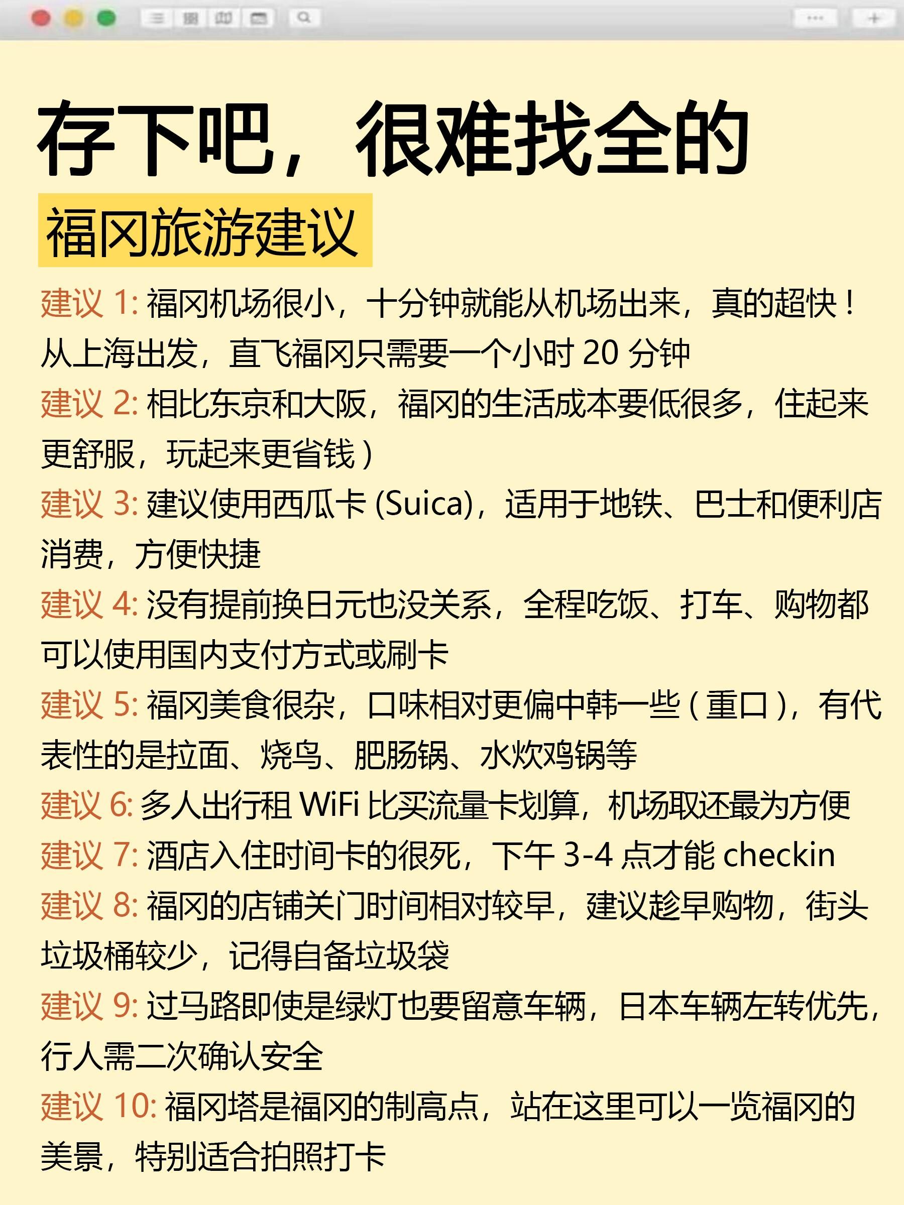 10—11计划去福冈旅行的宝子们,特地为你们更新了这份超全攻略,真的快快收好!