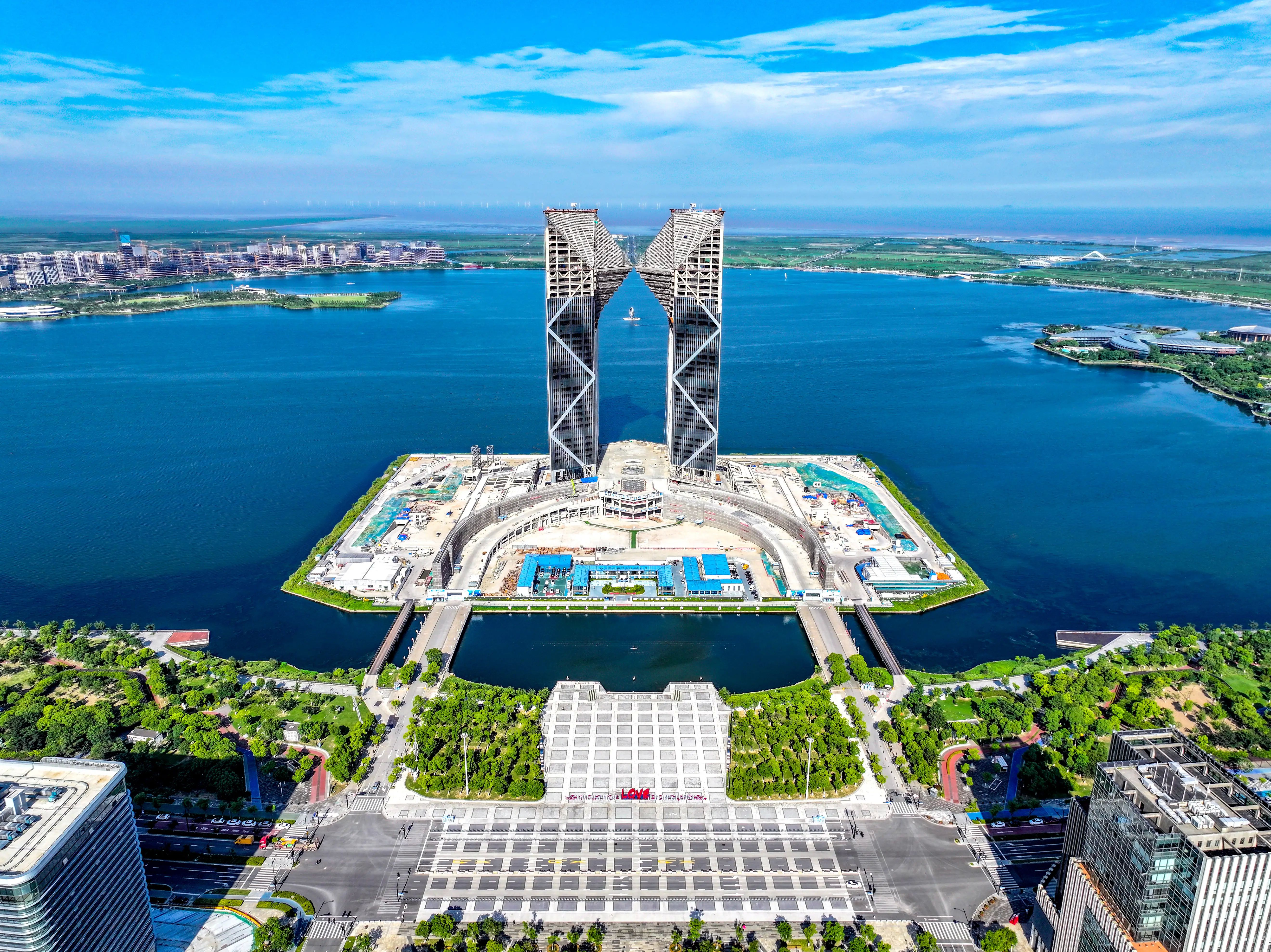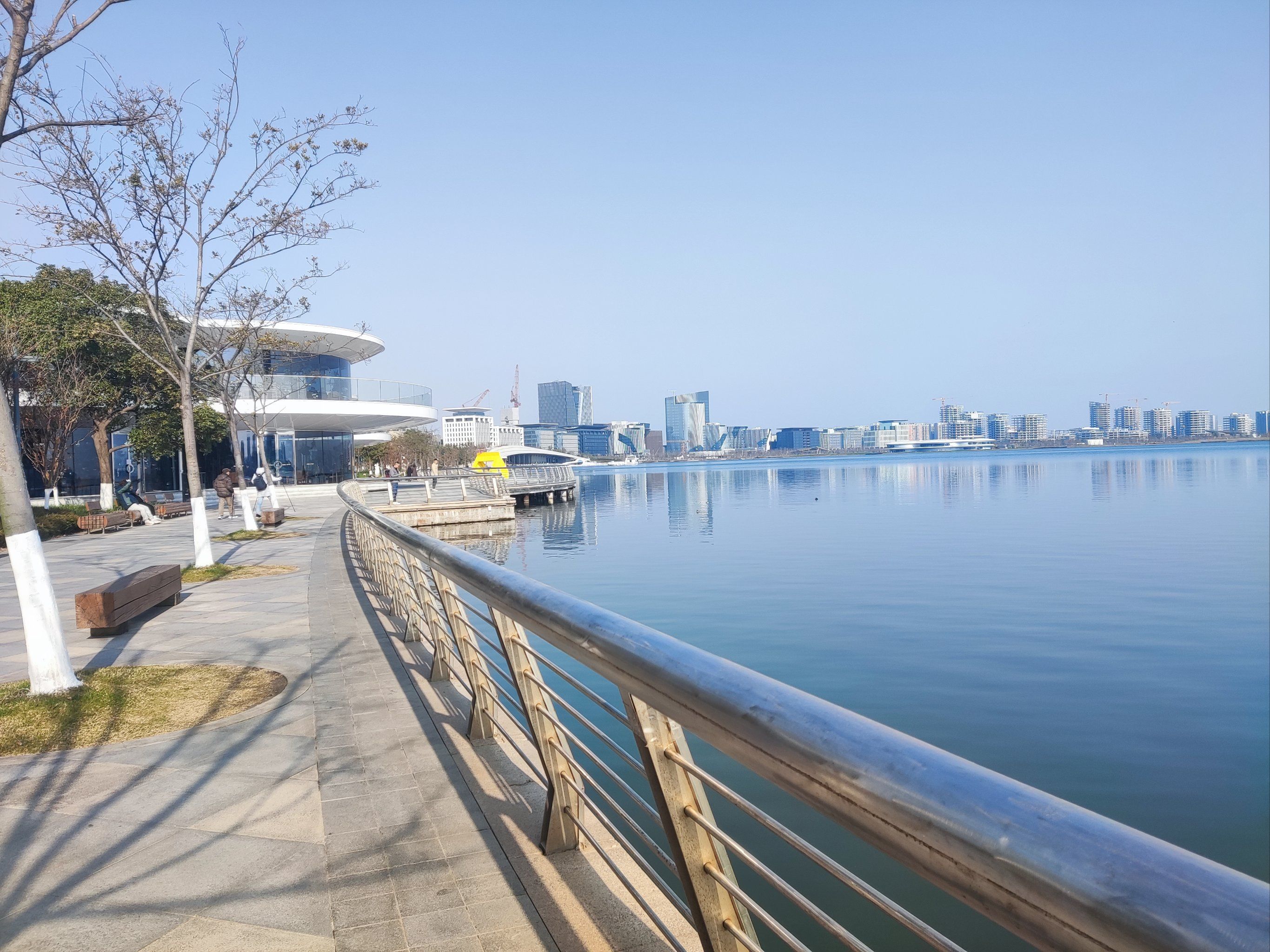 临港滴水湖的景色,简直是宝藏级的存在!它是看日出日落的绝佳之地,沿着圆环,现代建筑与自然风光相得益彰。