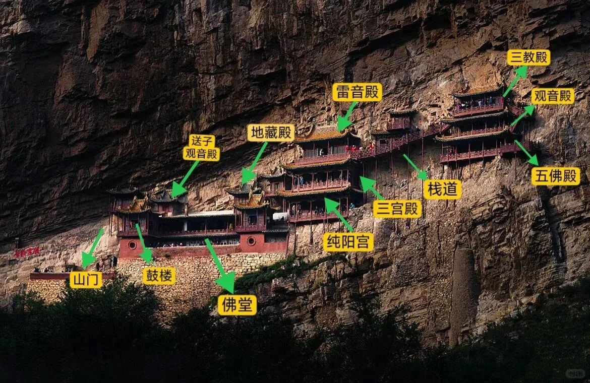 - 8:00-11:00:登临悬空寺,依次参观三教殿(佛道儒合一)、大雄宝殿(全国最小殿宇)、悬空栈道(注意安全)。重点观察榫卯结构,聆听现场讲解(50元/团)。