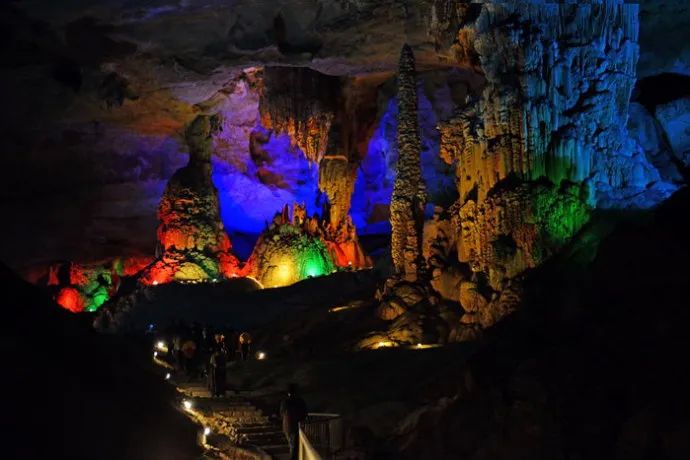踏入南丹,仿佛走进了一个天然的地质博物馆。恩村溶洞群犹如一座神秘的地下宫殿,当你沿着蜿蜒的步道深入其中,各种奇形怪状的钟乳石便映入眼帘。有的如利剑般从洞顶直插而下,有的像莲花般在地面悄然绽放,还有的似层层梯田,在灯光的映照下,散发着如梦似幻的光芒。这些钟乳石历经数百万年的岁月雕琢,见证了地球沧海桑田的变迁。