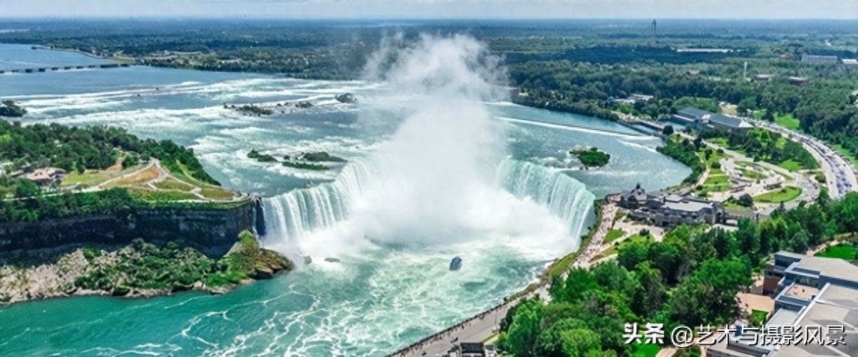尼亚加拉大瀑布:坐落于安大略省与美国纽约州交界,是世界三大跨国瀑布之一。其中马蹄瀑布规模最大,游客可乘船近距离感受水雾与轰鸣声,夜间灯光秀亦为特色景观。