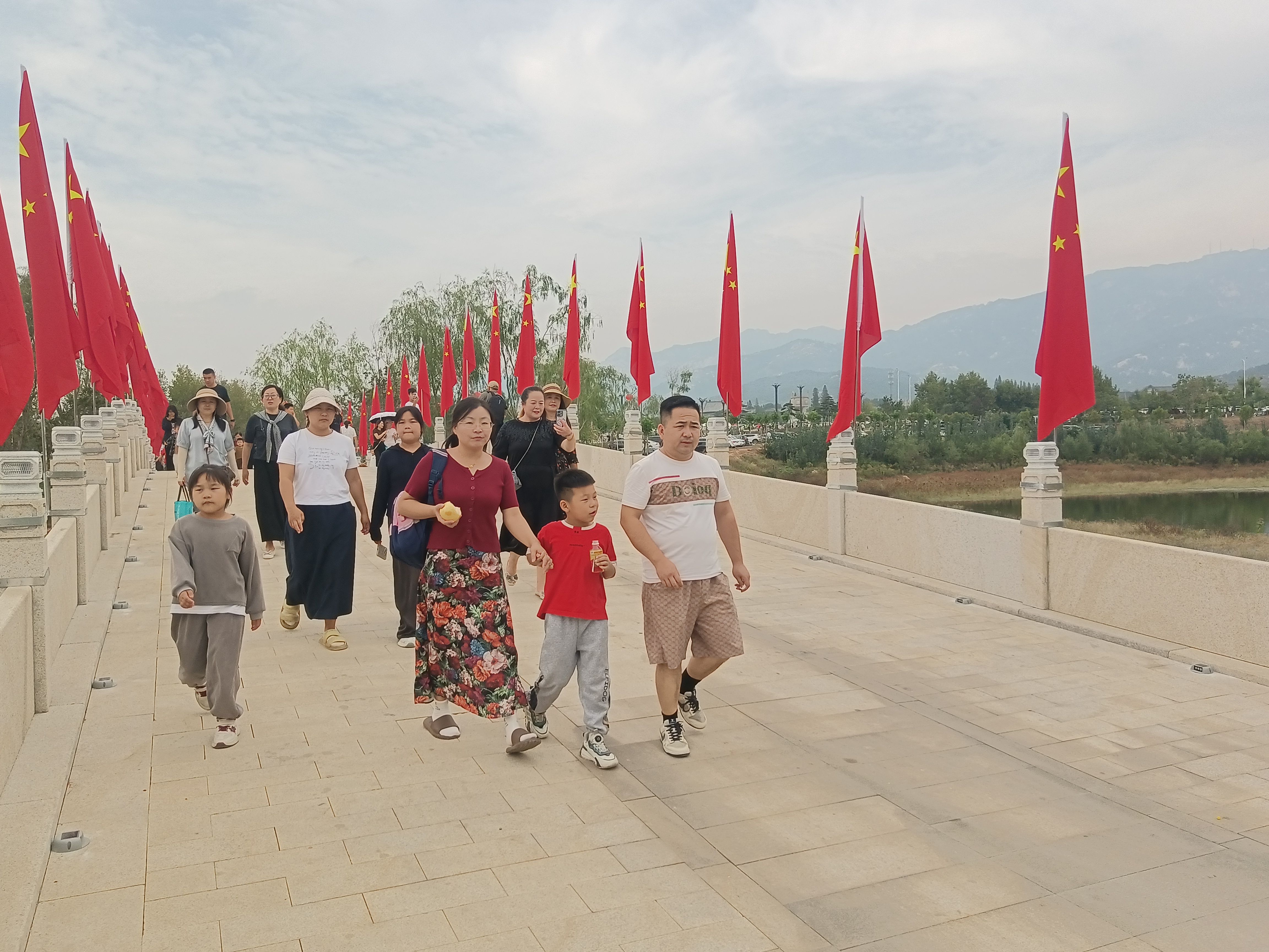 景区内,游客们三五成群,或漫步赏景,或拍照留念,脸上洋溢着愉悦的笑容。孩子们在花丛中嬉戏玩耍,欢声笑语回荡在整个山谷。一些游客还穿着古装,穿梭在亭台楼阁之间,仿佛穿越回了古代,感受着历史的韵味与文化的沉淀。