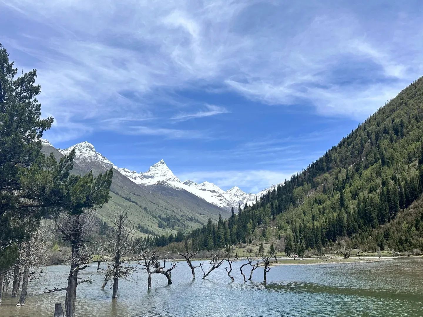 2. 长坪沟·枯树滩——千年枯树与冰川水的魔幻组合,秋季层林尽染如油画。