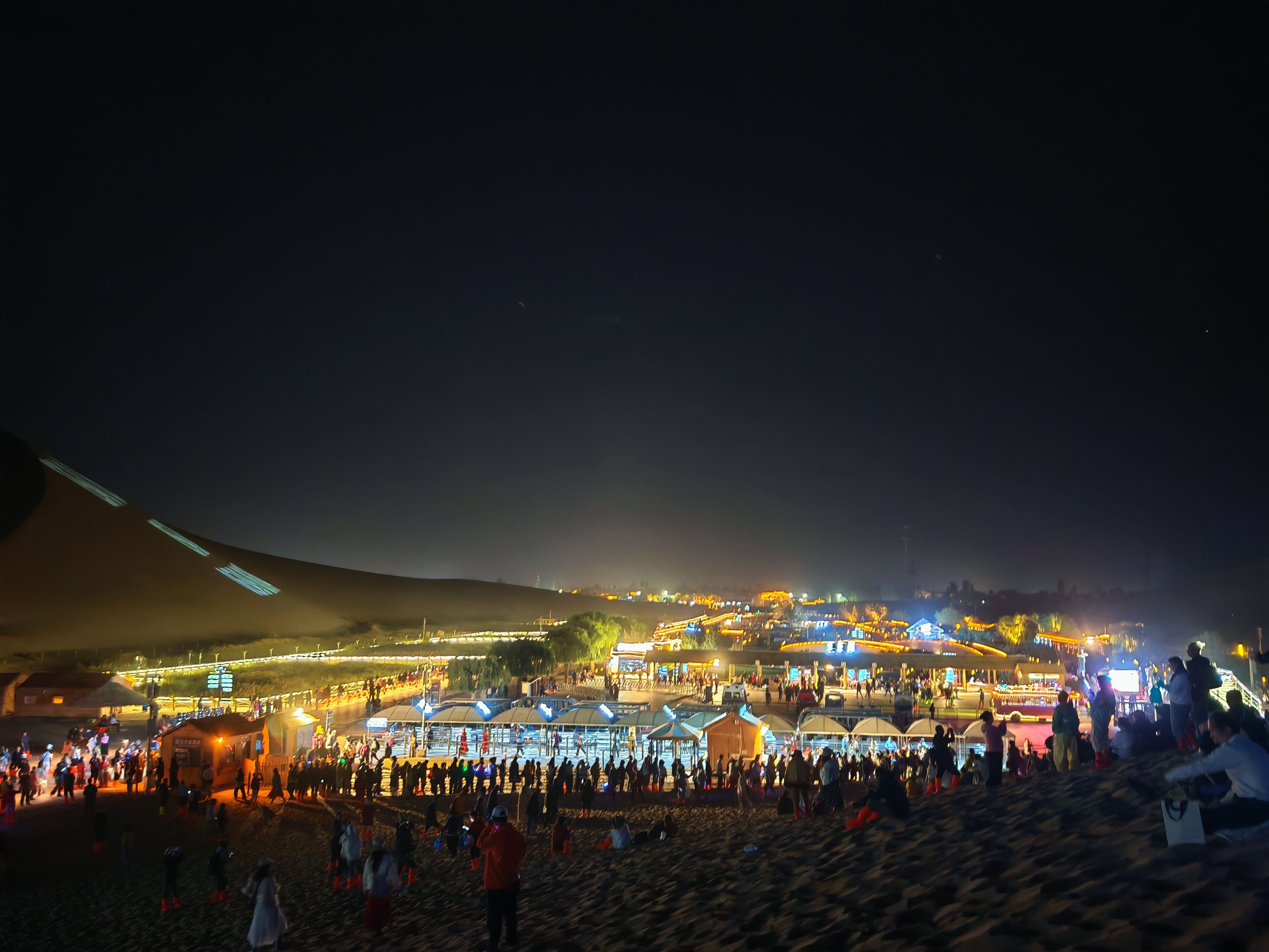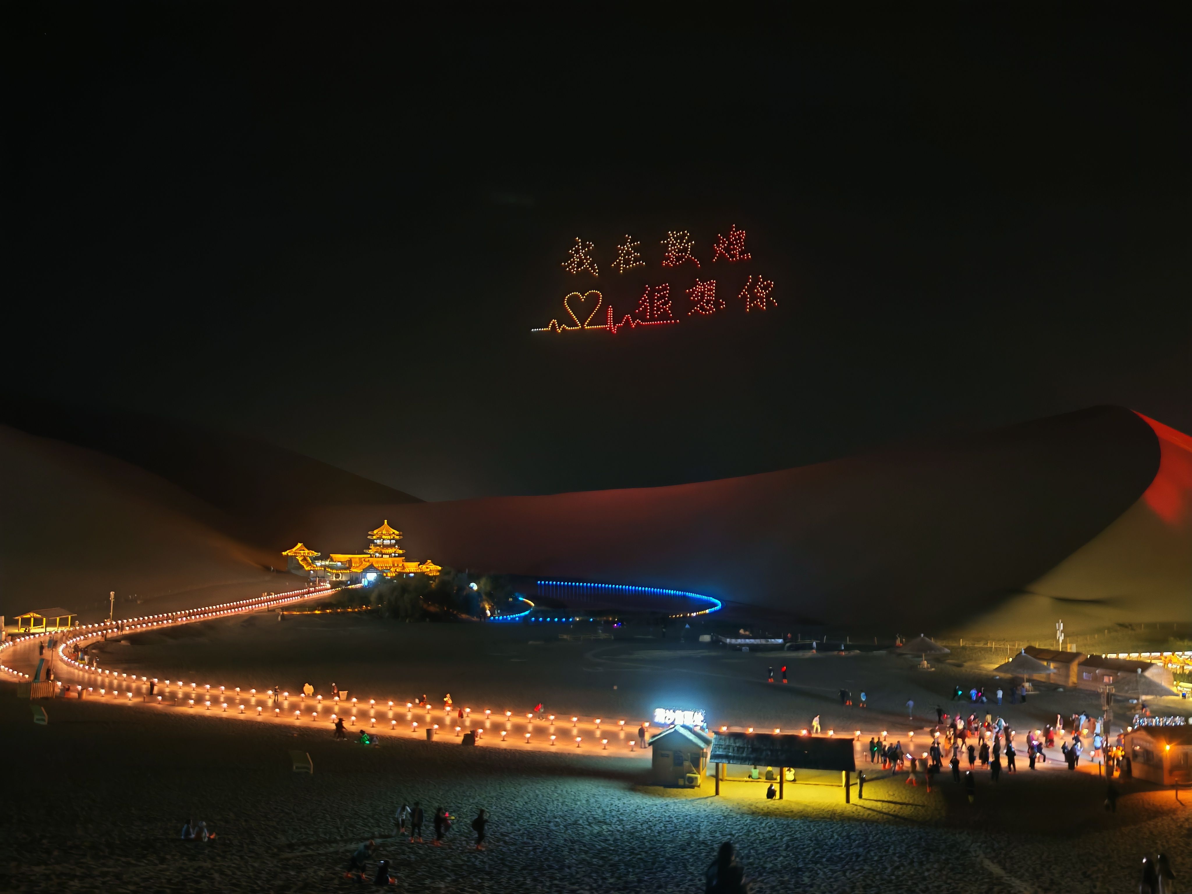 莫高窟参观结束已经中午12点了。吃过饭就去了阳关,对西出阳关无故人的诗句很有情怀,所以即使是废墟也要去走走,走过路过不要错过吧。敦煌市区到阳关60公里,来回要2小时,到达鸣沙山月牙泉已经下午17点,人很多都是来看晚上的星空演唱会,停车位都找了半个小时。演唱会19点30开始大概10首歌曲21点10分结束,特别在沙山上看夜晚的月牙泉很有感觉,值得一看。在景区人生第一次骑了半小时的骆驼,敦煌一天的行程收获满满吧。说下骑骆驼价格130元一个人,涨价了哈。另外演唱会在淡季是每周一三五,有计划去的朋友可关注景区公众号,关注演唱会变化。附上数字莫高窟的二维码给喜欢的朋友。