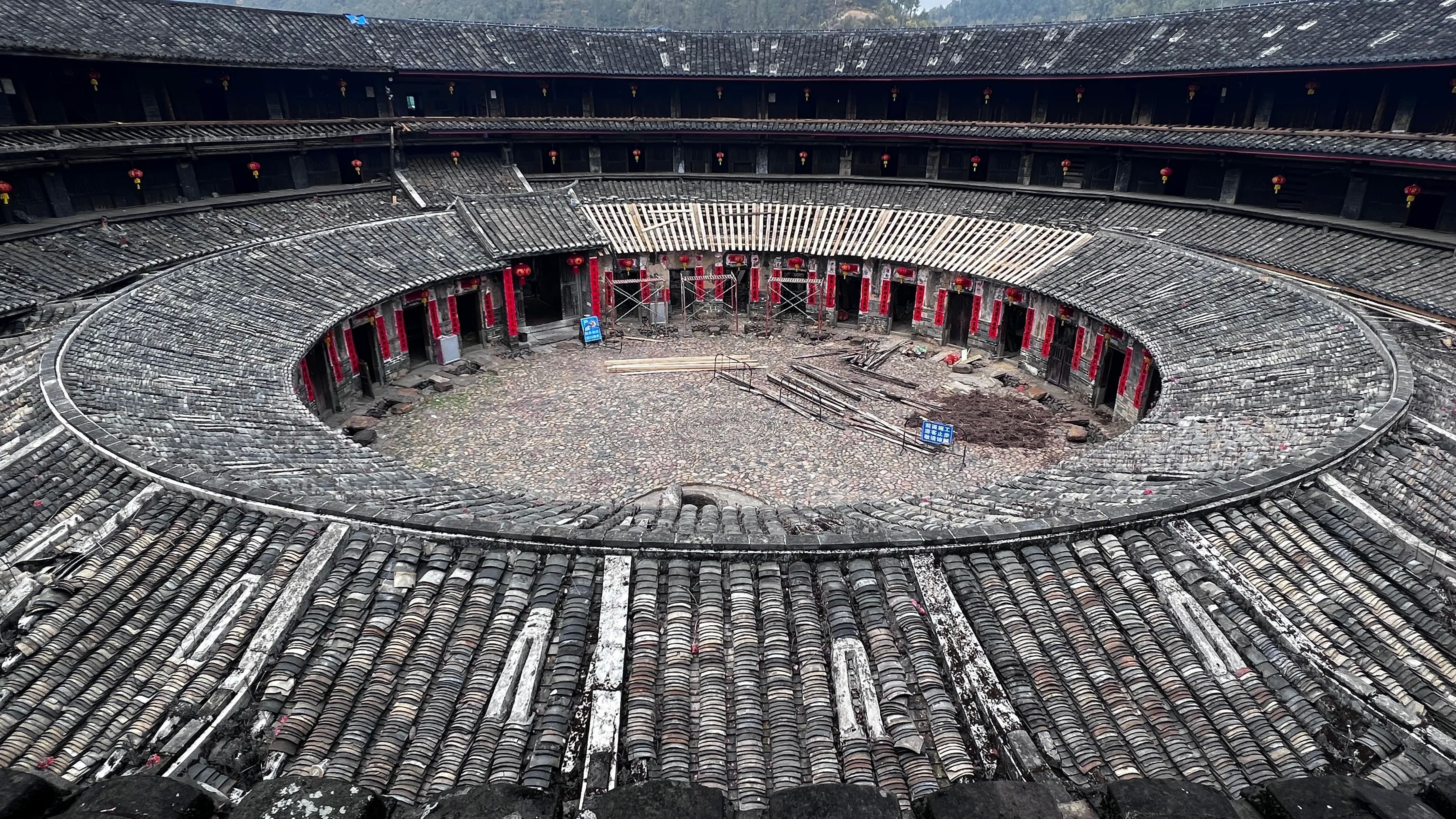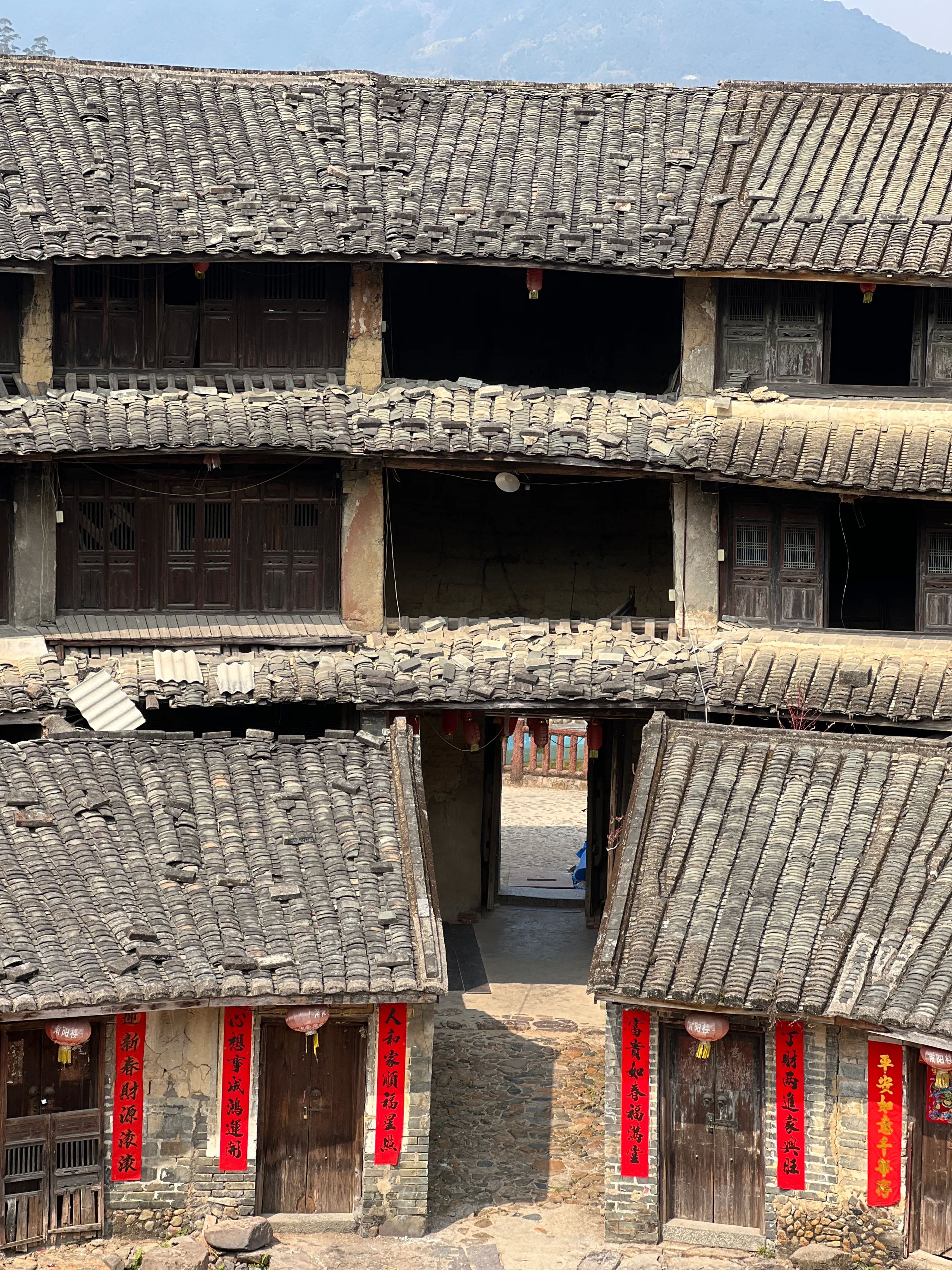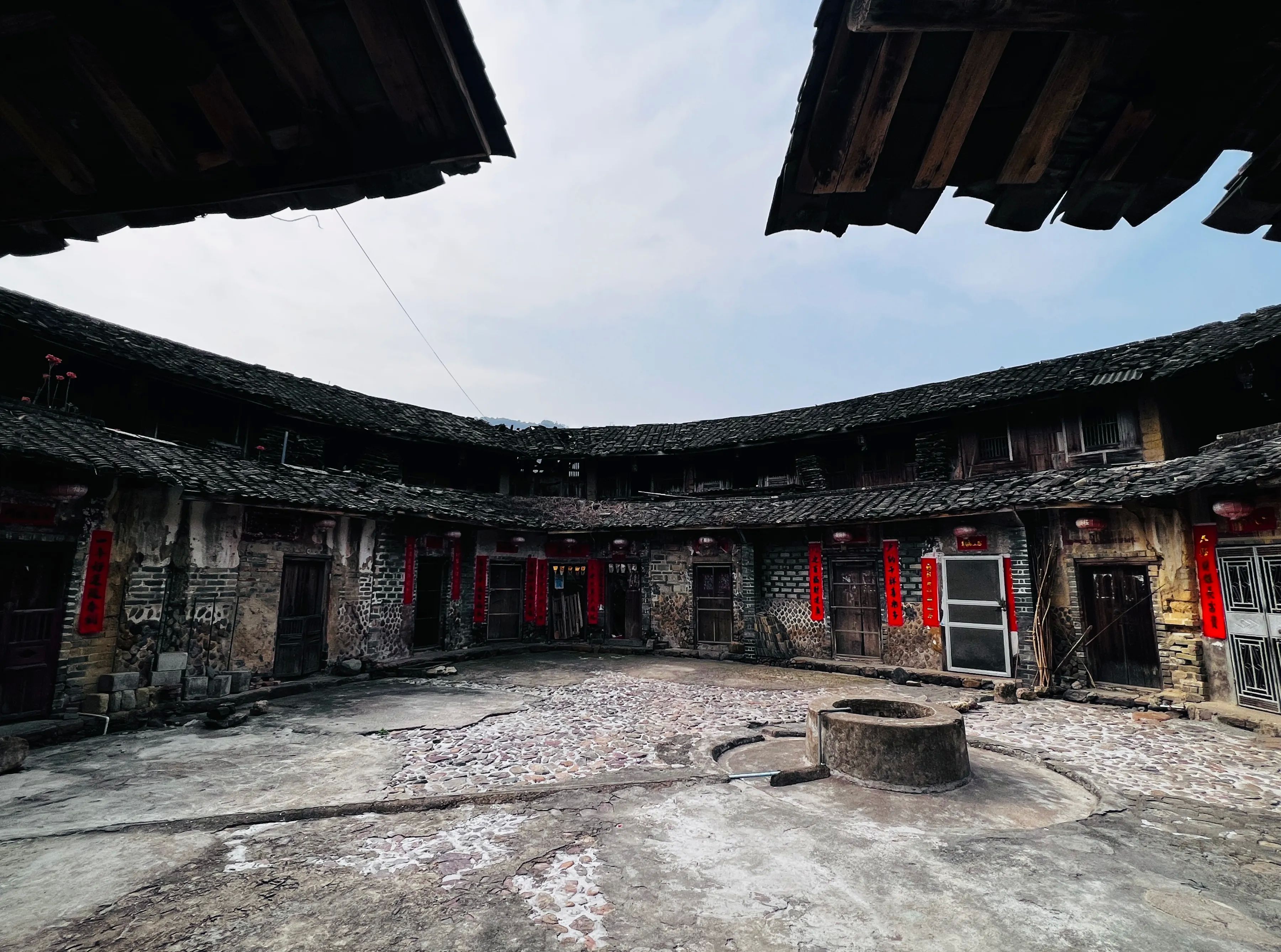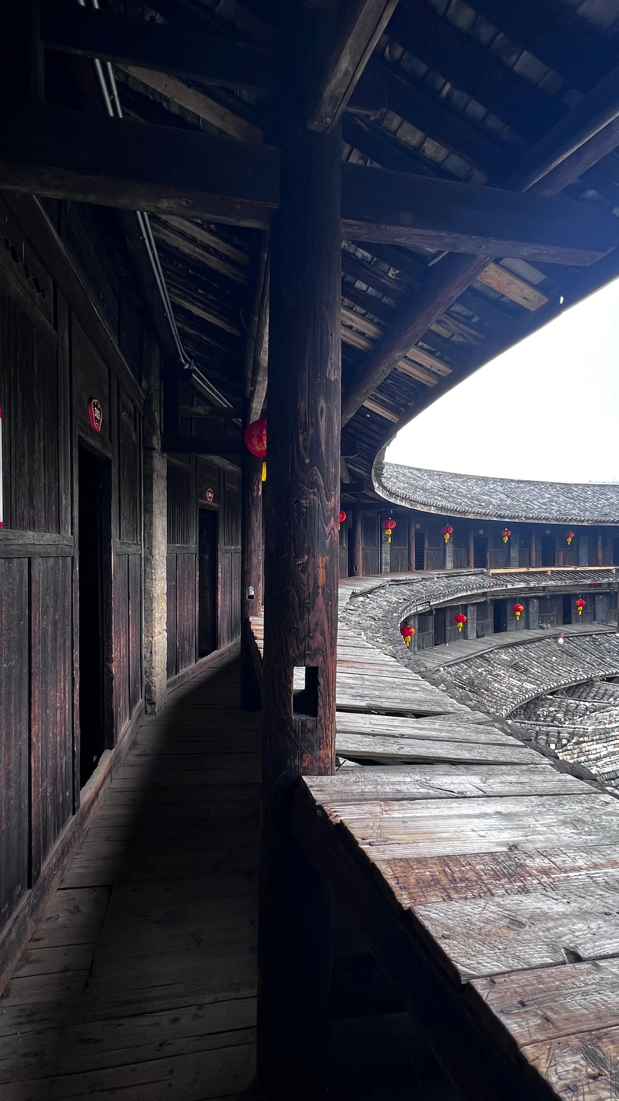 3、梅州·大埔·花萼楼: 国宝单位。近400年历史的客家土围楼,因形似花萼,且取意兄弟邻居相亲相爱,故名“花萼楼”。是广东土围楼中规模最大、设计最精美、保存最完整的民居古建筑。花萼楼的修缮,有一处是在二楼,将原有的部分瓦片改成木板,就可以坐上去了,特有体验感。