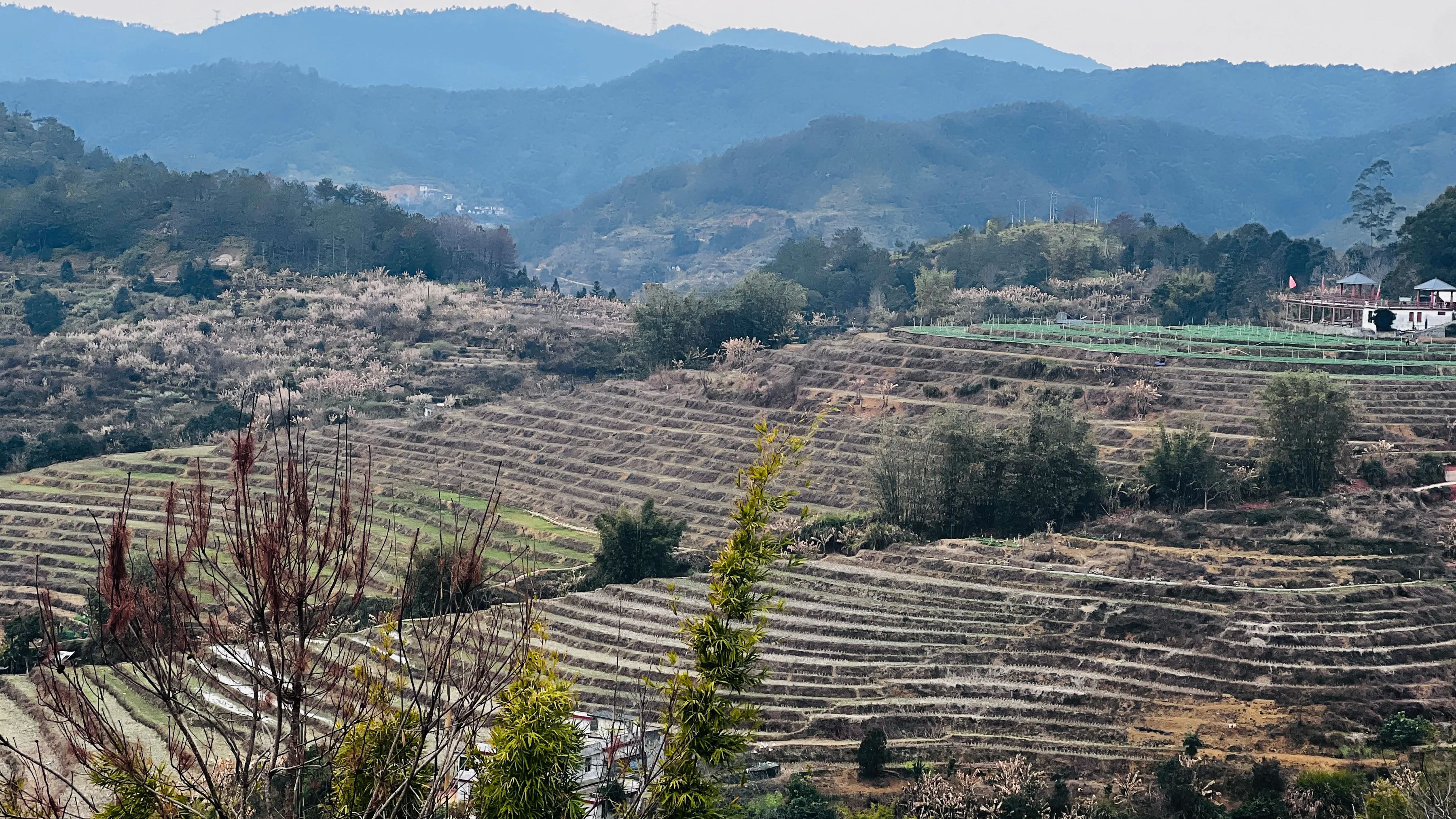 4、 梅州·大埔·坪山梯田:始建于明中期,完工于清初,距今有400多年的历史,共有1200多亩。现在,是最不合适的时候,30元门票,赠送1袋当地的富硒米,线上30元1斤。望着修养生息的大地,想象着接下来的美景,和当地人聊着他们的美好愿景。