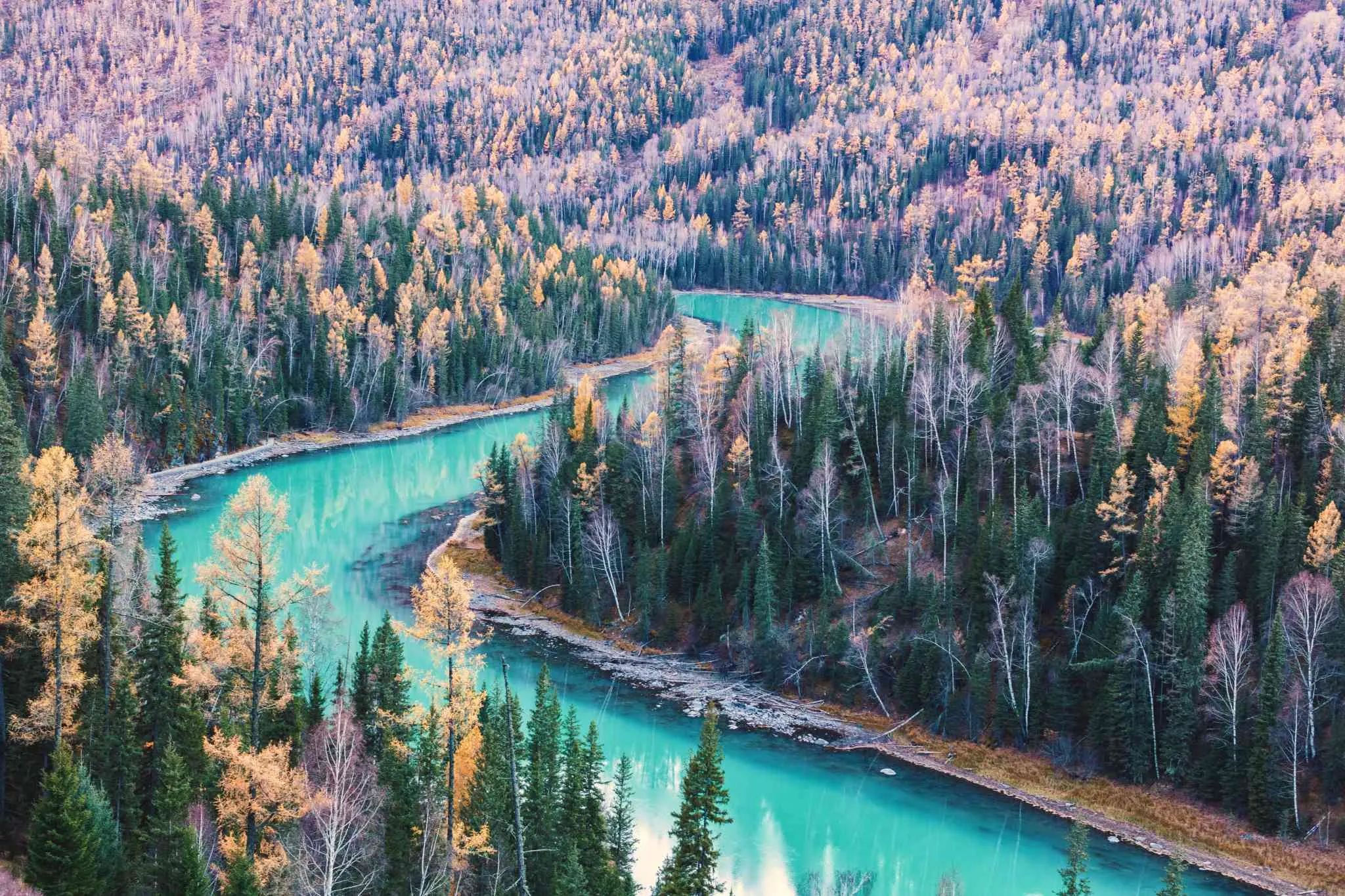 - 喀纳斯景区:位于阿尔泰山中段,景区内的喀纳斯湖神秘深邃,卧龙湾、月亮湾、神仙湾等如同一颗颗明珠镶嵌其中。四周林木茂盛,秋季时树木变得五彩斑斓,仿佛一幅绚丽的油画。