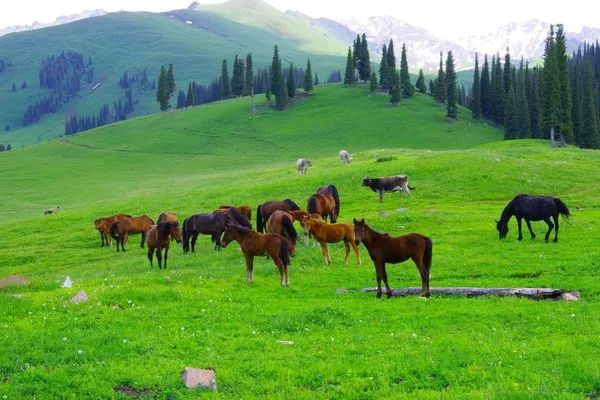 - 那拉提草原:地处天山腹地,是世界四大草原之一的亚高山草甸植物区,自古以来就是著名的牧场,素有“天山绿岛”之美誉。草原上有成群的牛羊和骏马,远处是连绵的雪山,景色非常壮观。