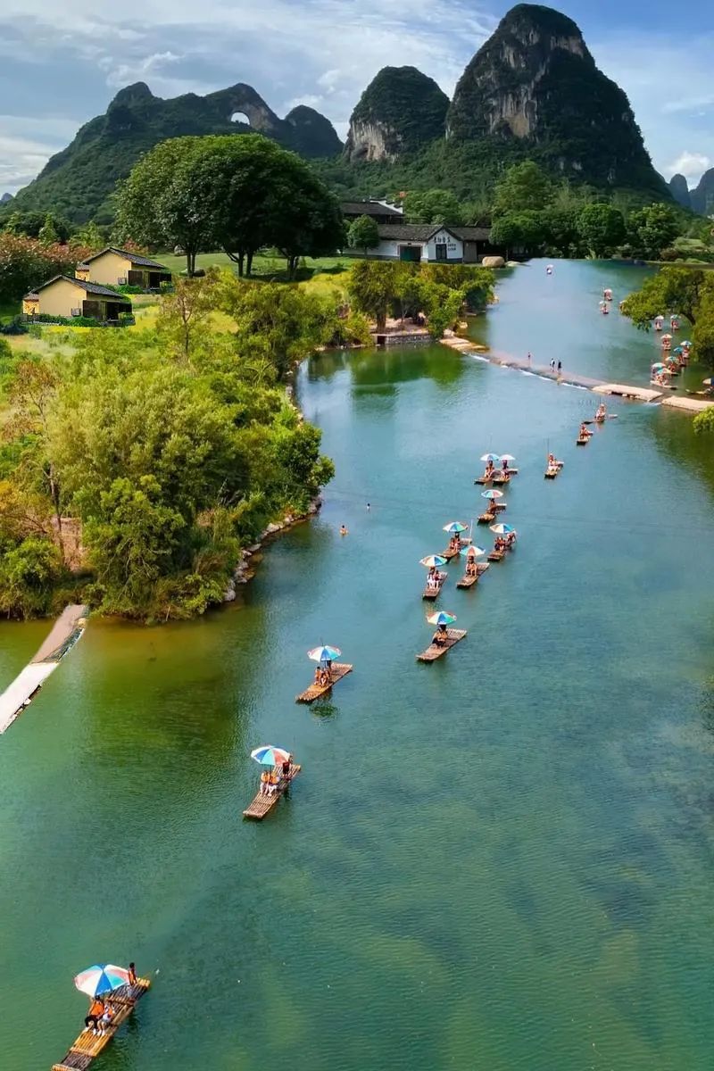 - 下午:前往十里百艇,乘坐竹筏或者快艇欣赏漓江美景。