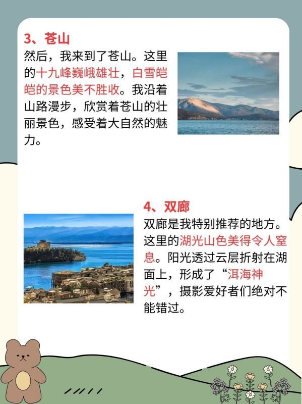 我的大理之行让我深刻体验到了这里的魅力。如果你也想去大理周边游玩,这些景点都是不错的选择。相信你一定会在旅途中找到属于自己的惊喜和感动。