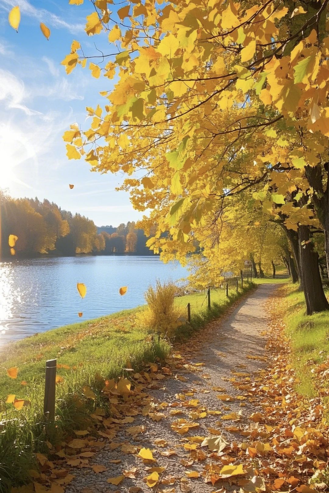 穿过一片稀疏的树林,视野豁然开朗。风,是这里的第一位向导。它拂过水面,带起粼粼的波光,那光芒不是刺眼的金色,而是像揉碎了的蜜糖,软软地、一层层地铺散开来。整个湖面,仿佛一匹被微风轻轻吹动的、巨大而柔软的绸缎。