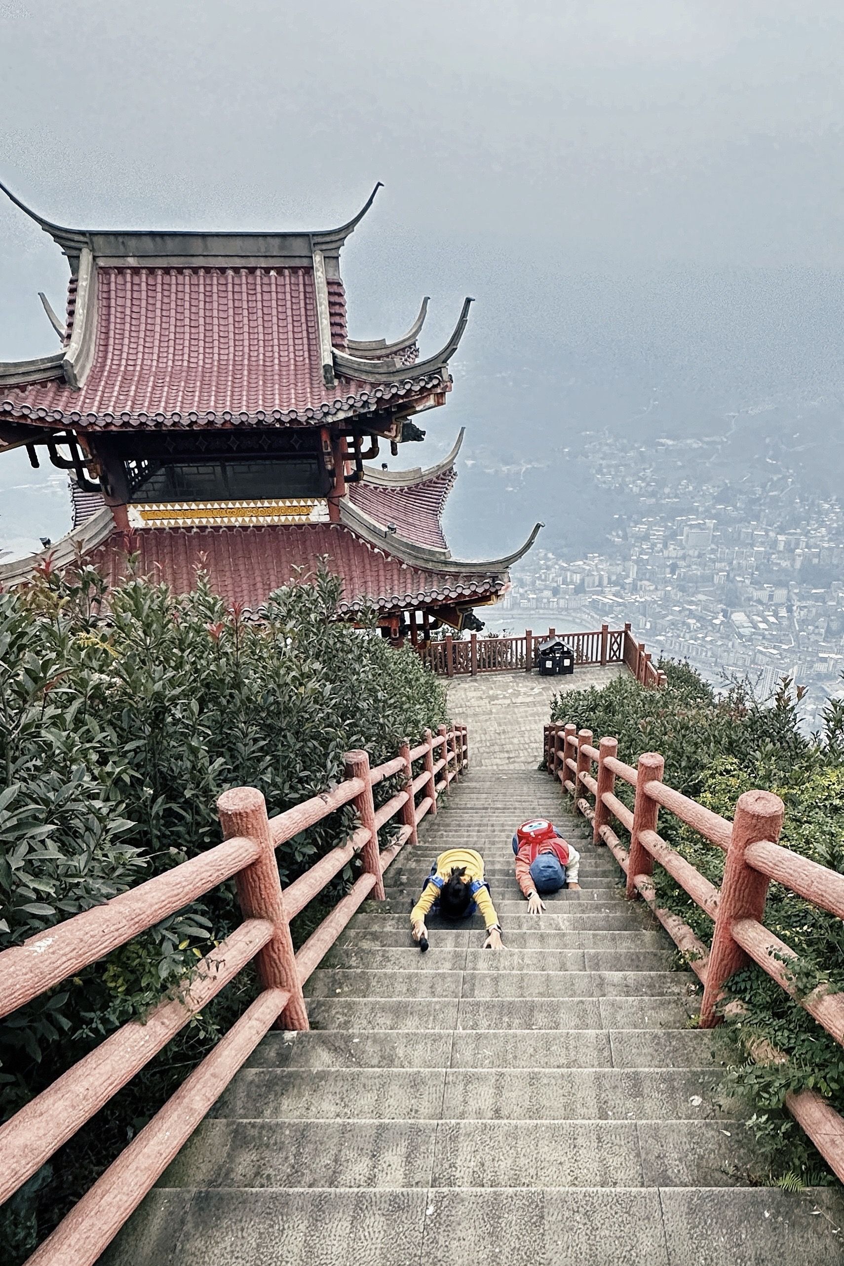 团队协作精髓:一定要带一个“走不动”的朋友,刚爬一座亭就喊废的那种