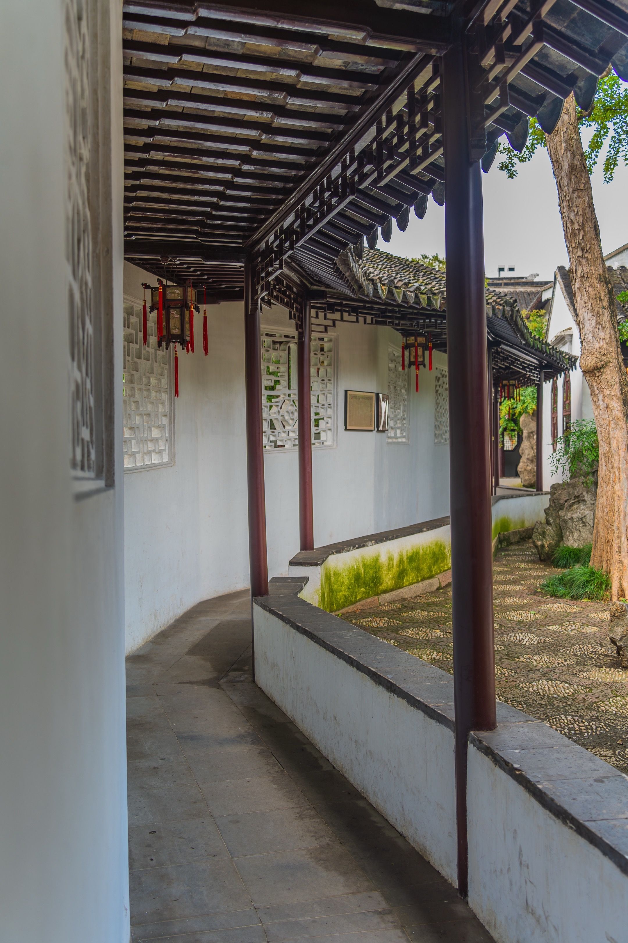 复廊:贯穿东西,十二方漏窗图案各异 ,漫步其中,两侧景色相互借景,妙趣横生