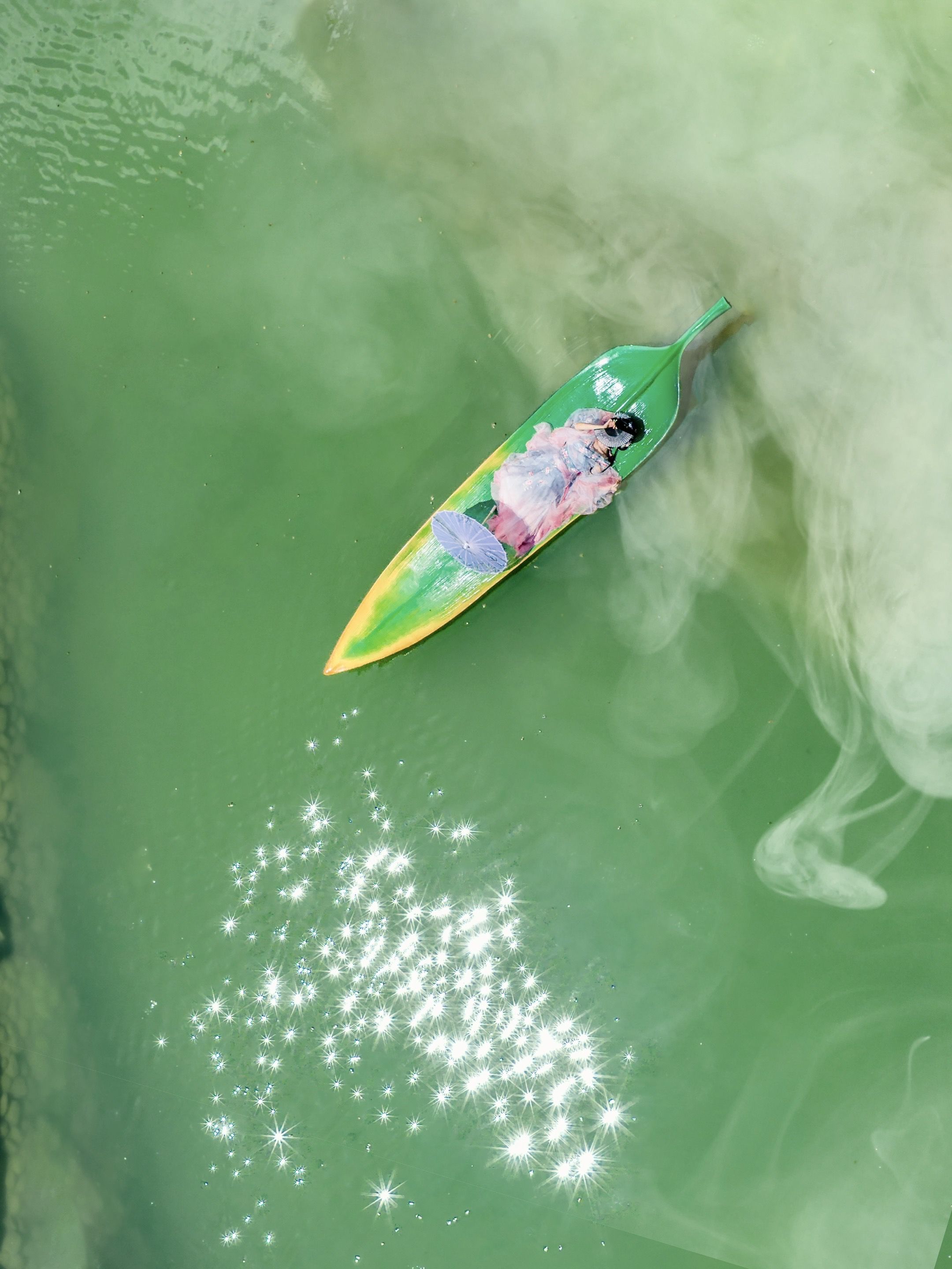非遗独竹漂:人立单竹泛碧水,身姿灵动似飞,山水间演“水上轻功”,一眼难忘~