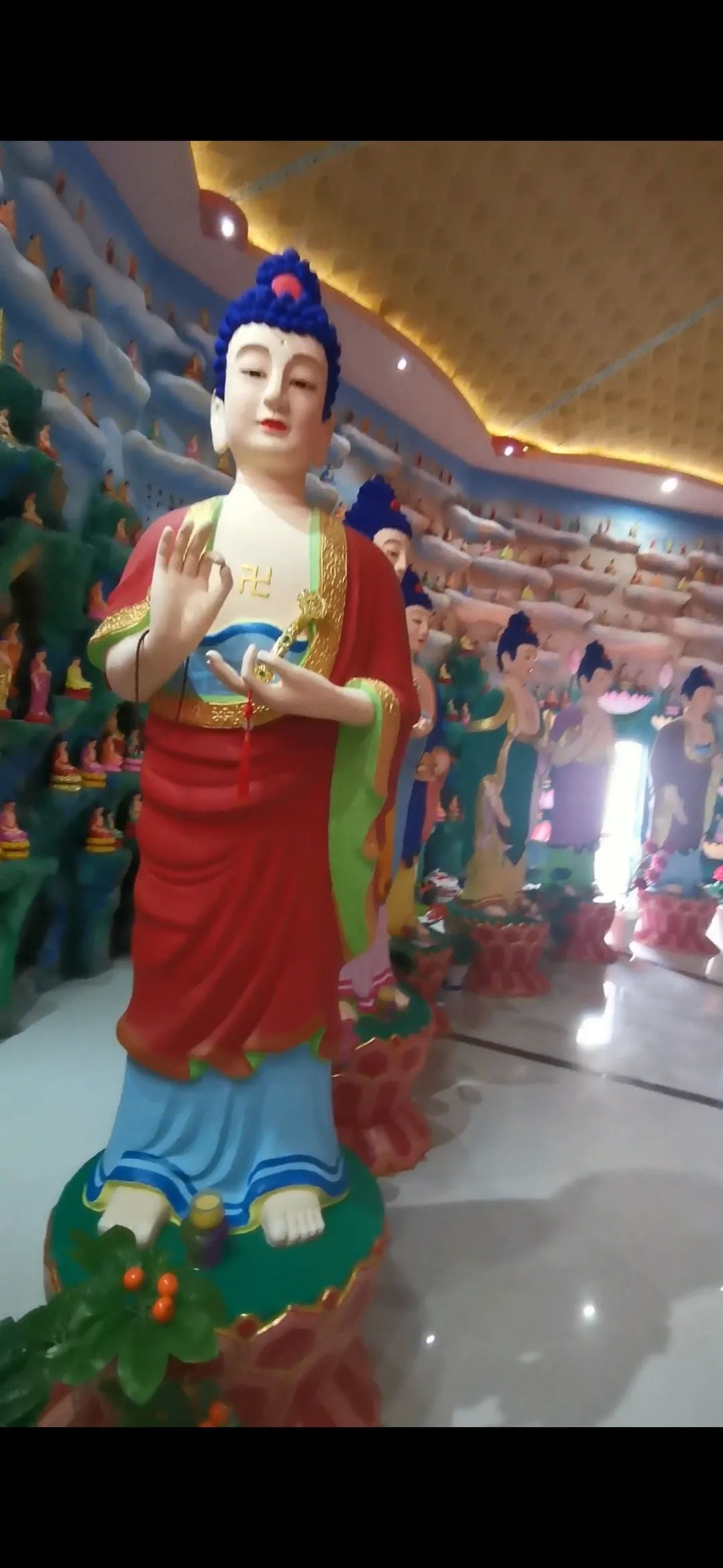 1.导航菩提山灵山学院爱国主义教育基地,约51公里1小时15分钟。这是个人建的 ,我是去往磁县卧龙山景区的路上遇到的,远看很惊艳,高德地图导航一搜是这个名称,无门票无停车费。主人很热情,主动打开建造的八角宫殿。一楼供奉的是佛祖菩萨,中间的佛祖和菩萨高大庄严,满墙都是形态各异的佛像,称千佛阁也不为过。二楼展示的是志愿军战士长津湖战役的场景,主人也是为了纪念抗美援朝的志愿军人而专门设立的。景区内还有八女投江、狼牙山五壮士等塑像,来时一定看看。