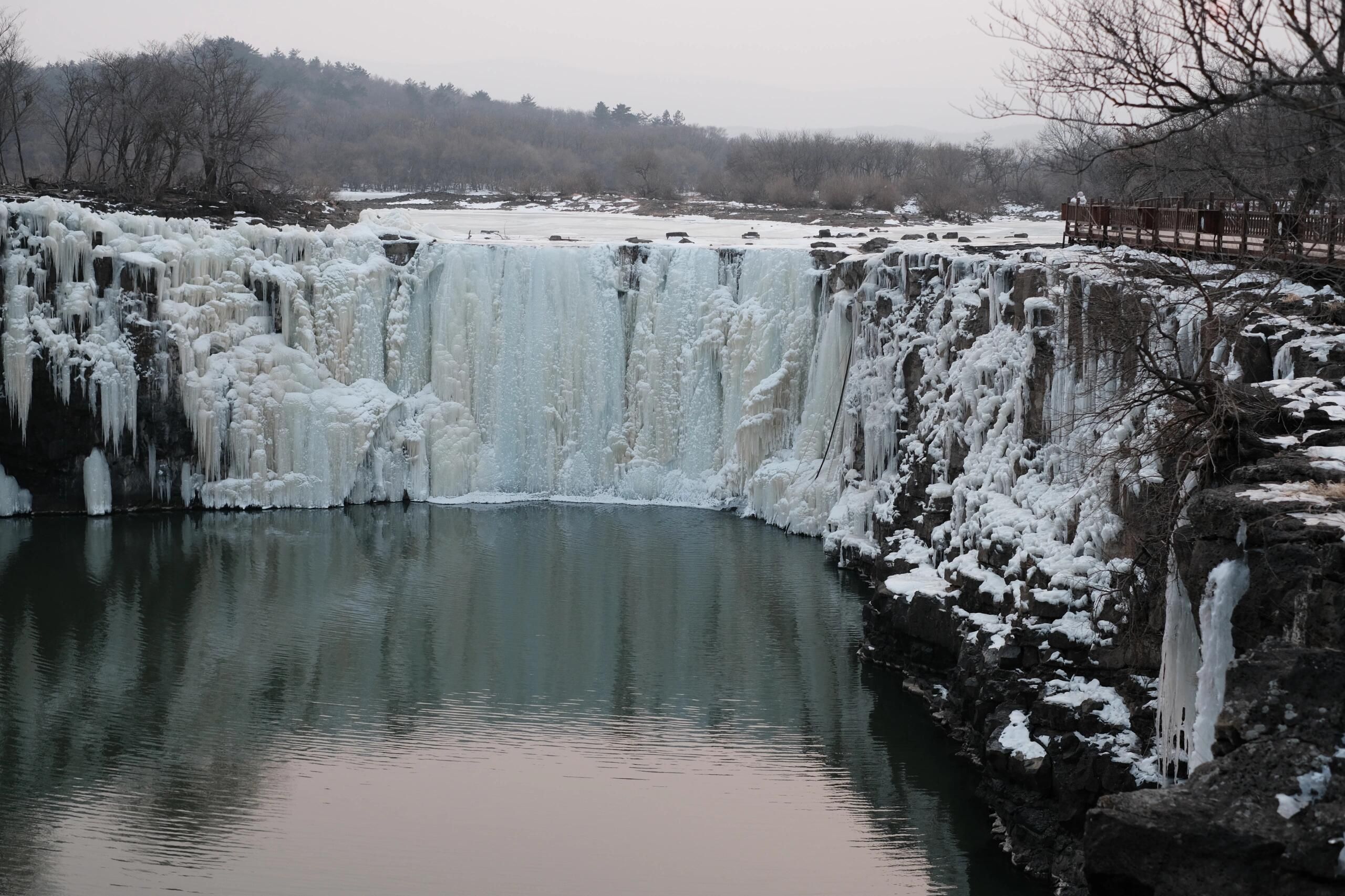 中国最大火山熔岩堰塞湖,夏季瀑布奔腾,冬季冰挂如帘
