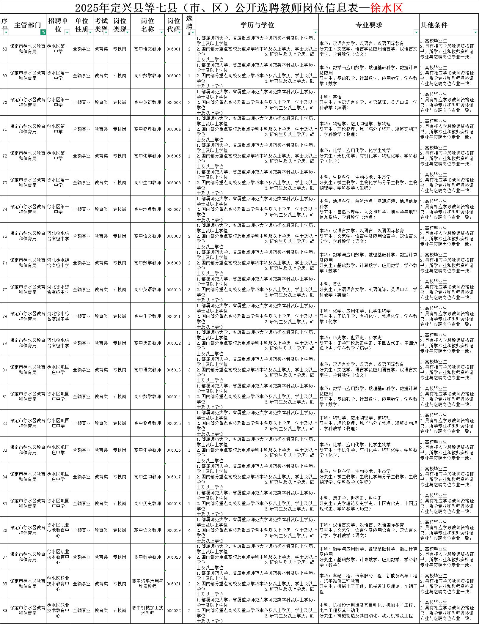 (定兴县25名、竞秀区20名、徐水区40名、清苑区18名、高碑店市20名、涞水县15名、阜平县9名)