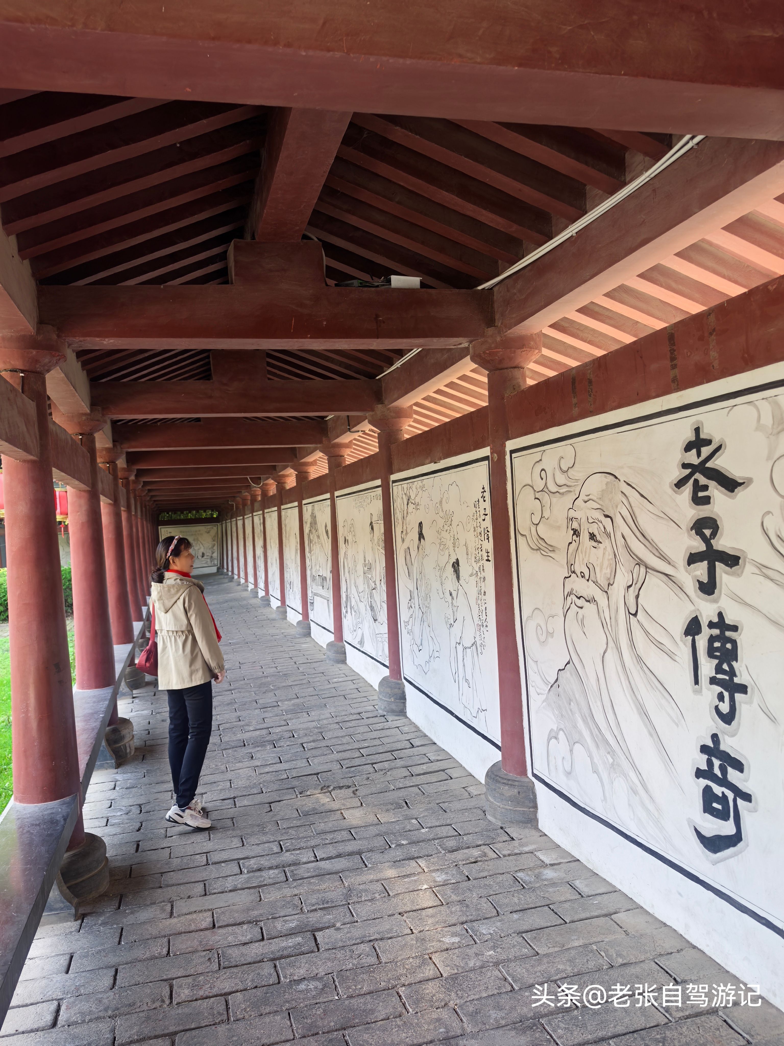 图1,下了观光车,老子的巨大铜像是老子文化广场的重要标志。广场附近的墙上,刻着世界上规模最大的《道德经》。