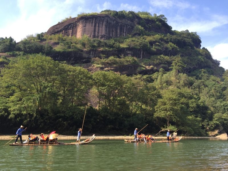 1. 武夷山风景区:世界文化与自然双遗产地,以丹霞地貌著称。可登天游峰俯瞰云海,乘竹筏漂流九曲溪欣赏两岸奇峰怪石,还能在岩骨茶香漫游道探访大红袍母树。