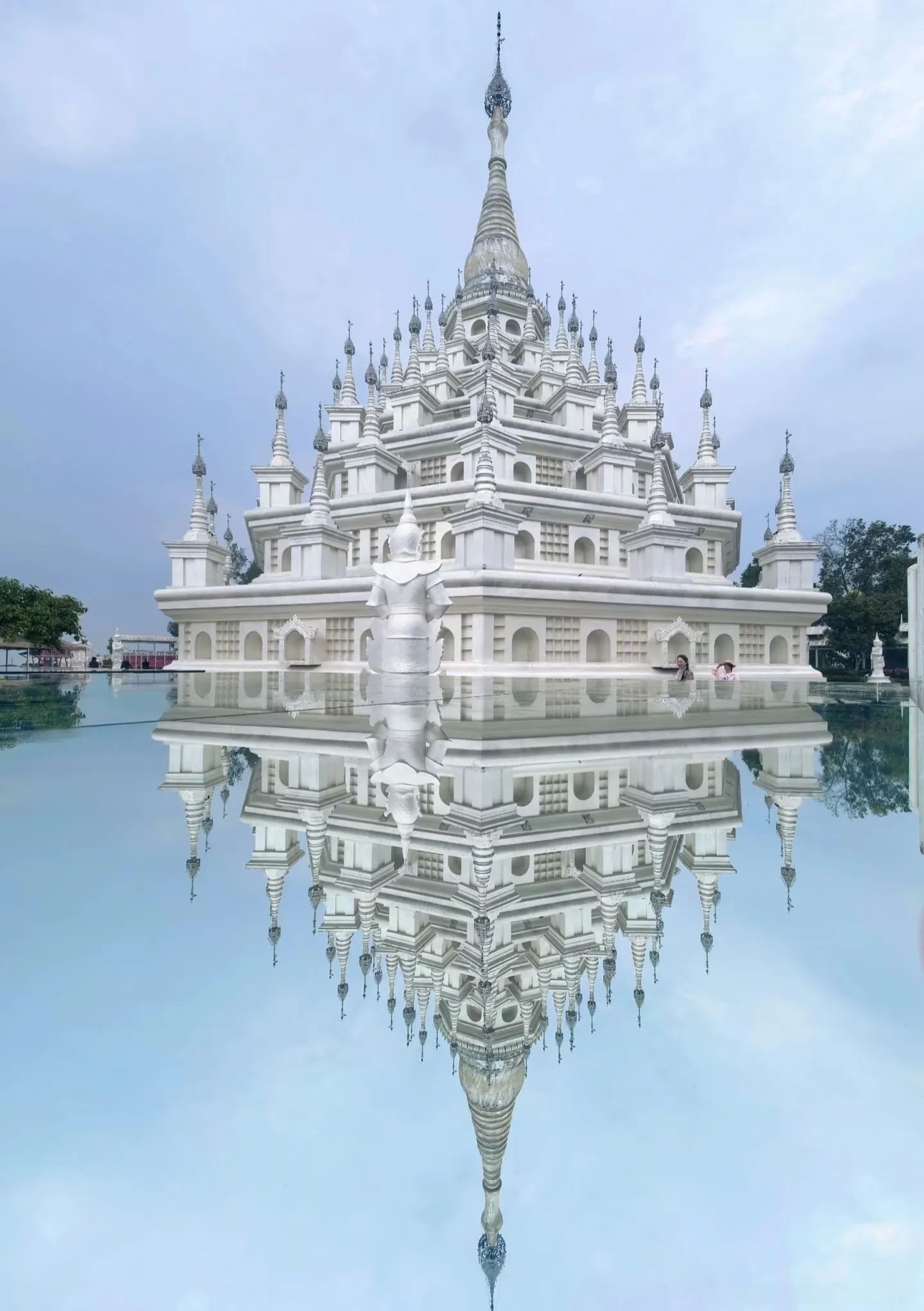 - 下午:参观勐焕银塔,洁白塔身与大金塔遥相呼应,拍照超美,周边植被茂盛,宛如仙境。