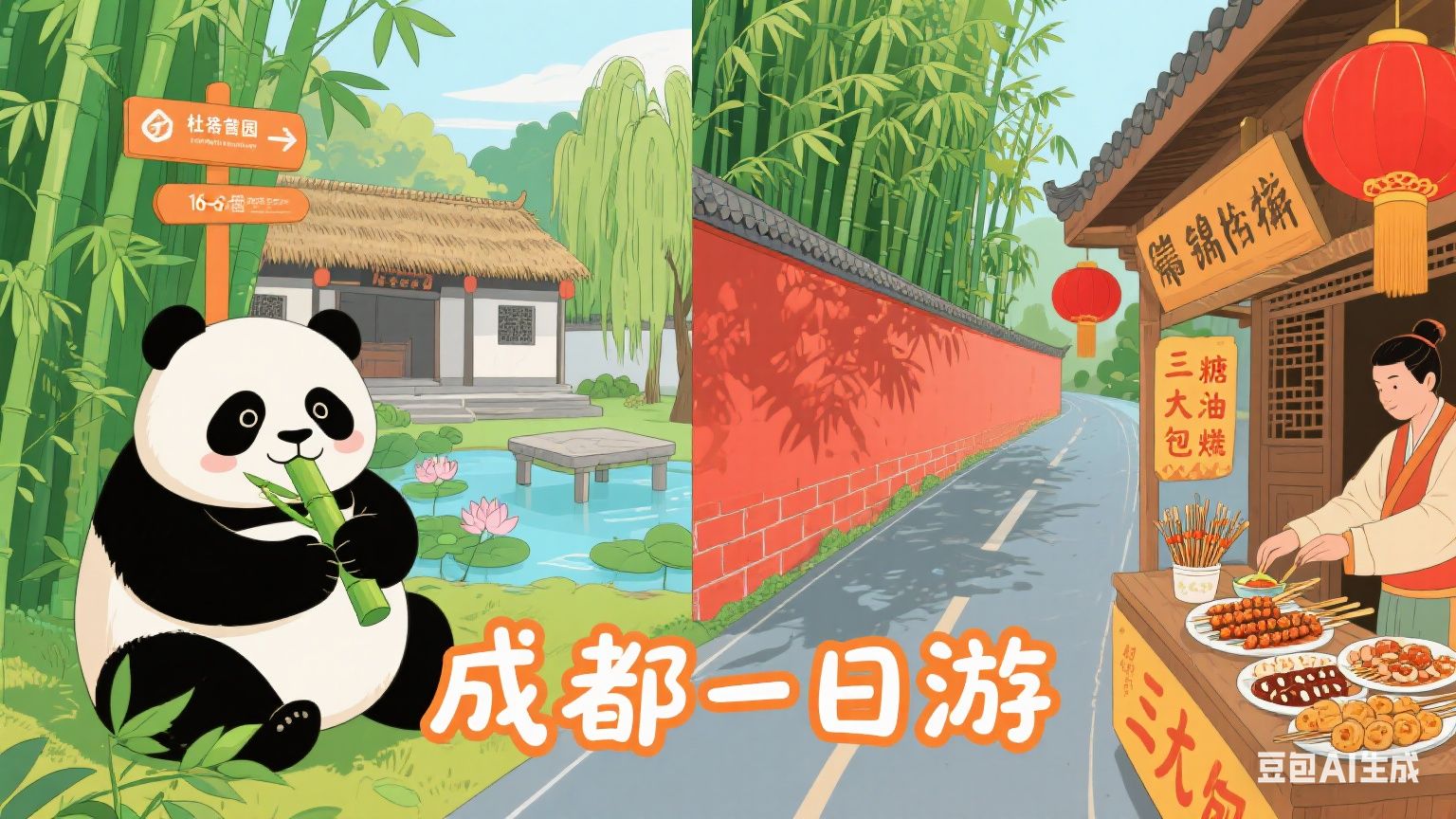 成都是一座充满魅力的城市,既有可爱的大熊猫,又有深厚的历史文化底蕴,还有令人垂涎的美食。以下是一份成都一日游攻略: