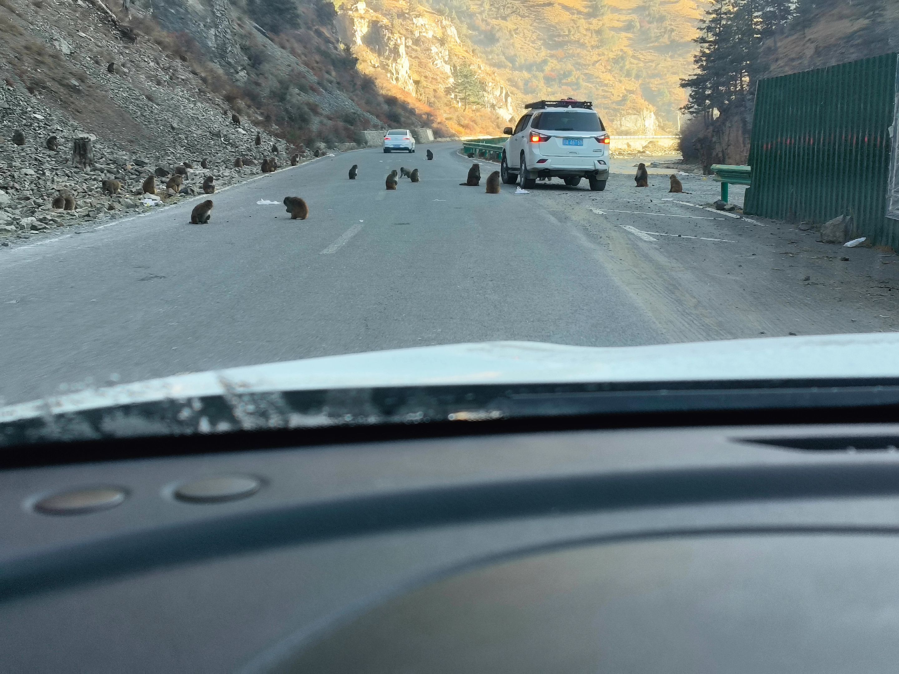 色达县往南有条548国道,走一点就能往东拐到317国道上。317国道比318国道的景色差远了,我都懒得拍。不过昨天在去色达的455省道上被猴子收了过路费,结果今天走色达的这条548国道又碰到另一波猴子打劫。这波猴子比昨天的凶悍,都开始跳上车抢东西了。好在周边车多,猴子没顾上我,我跑的比较快。