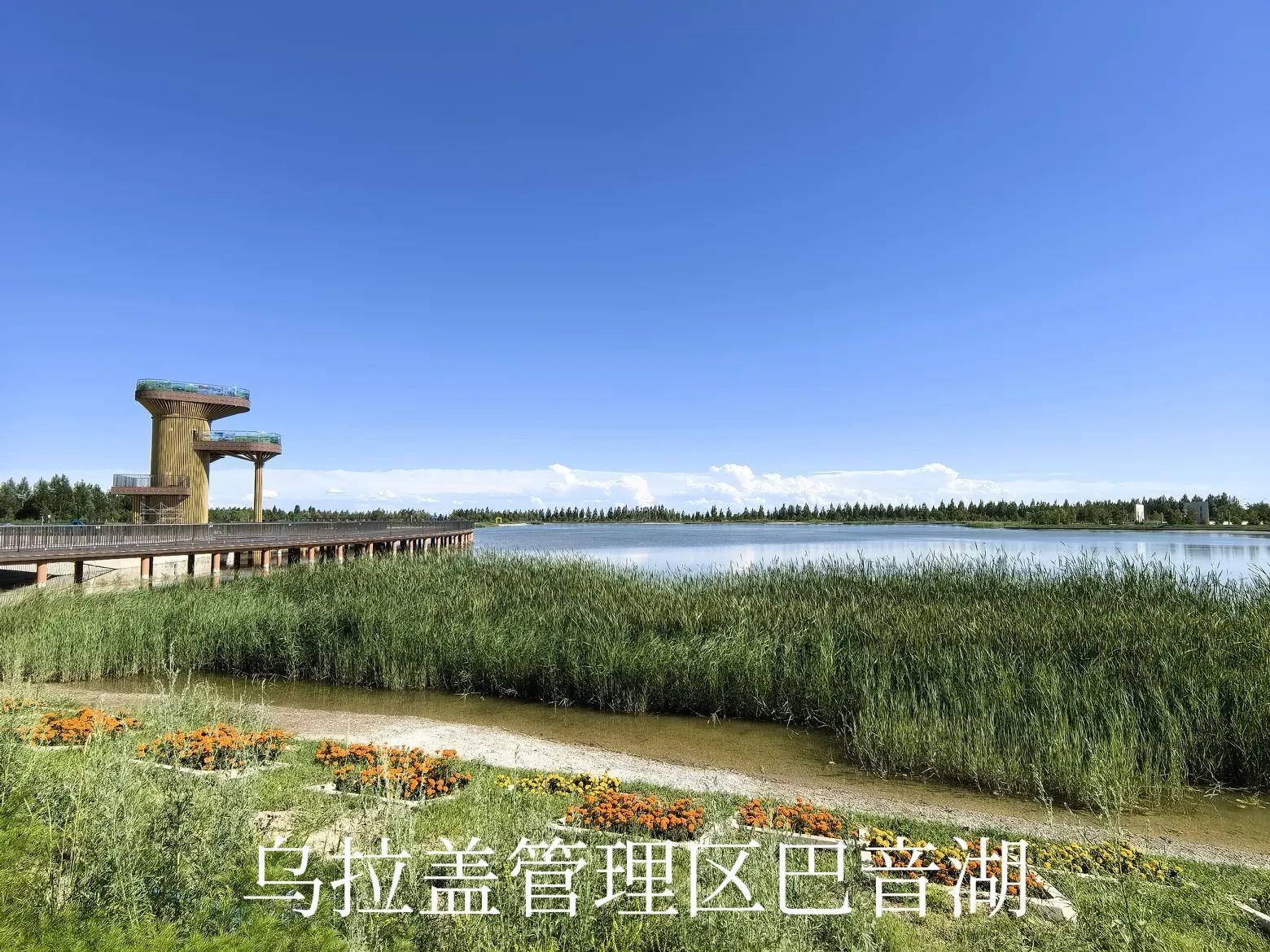 从九曲湾景区出来右转到来时的道路,行驶几公里有一个岔路口,要直行沿乌拉盖湖边走,沿途还有几个观景台,景色也不错,可以驻足观景。