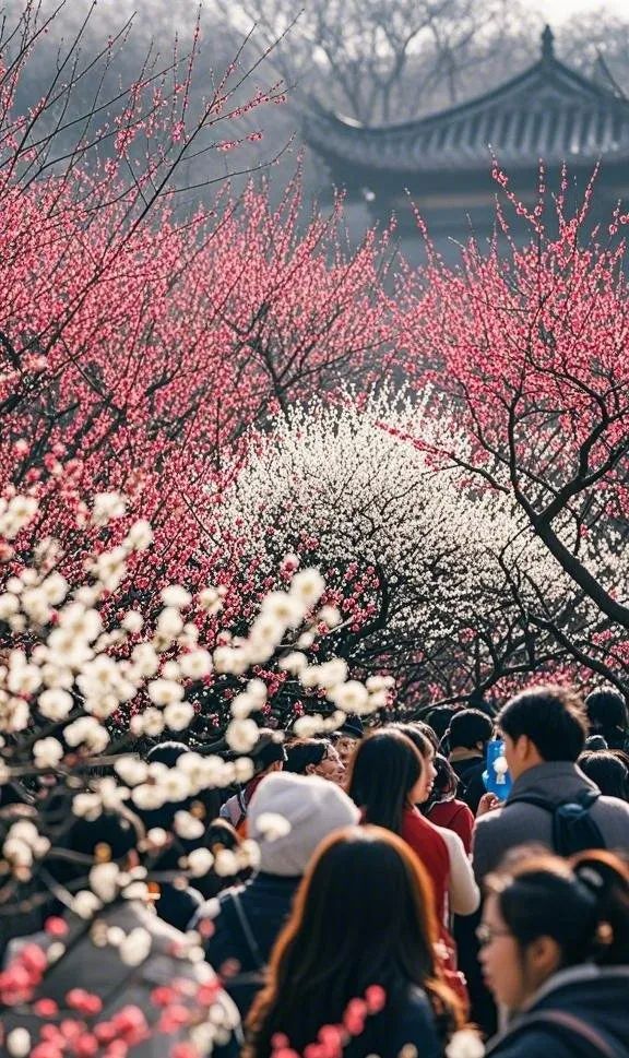 南京梅花山以其独特的自然景观和深厚的文化底蕴,成为春季赏梅的绝佳去处。游客在这里不仅能欣赏到漫山遍野的梅花,还能感受到浓厚的历史氛围。