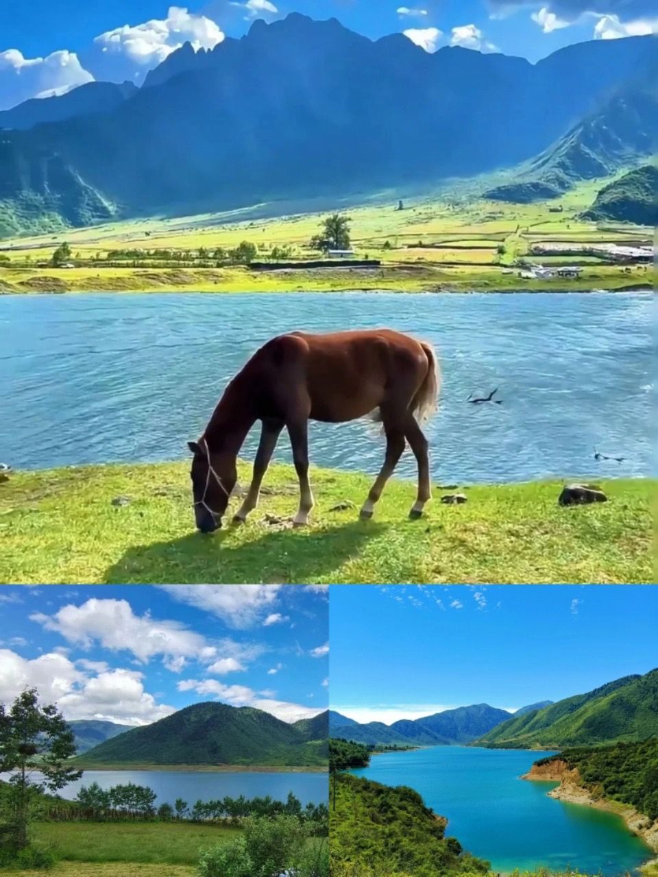 **冶勒湖:高原湖泊碧蓝如镜,倒映雪山云朵,仿佛世外桃源。
