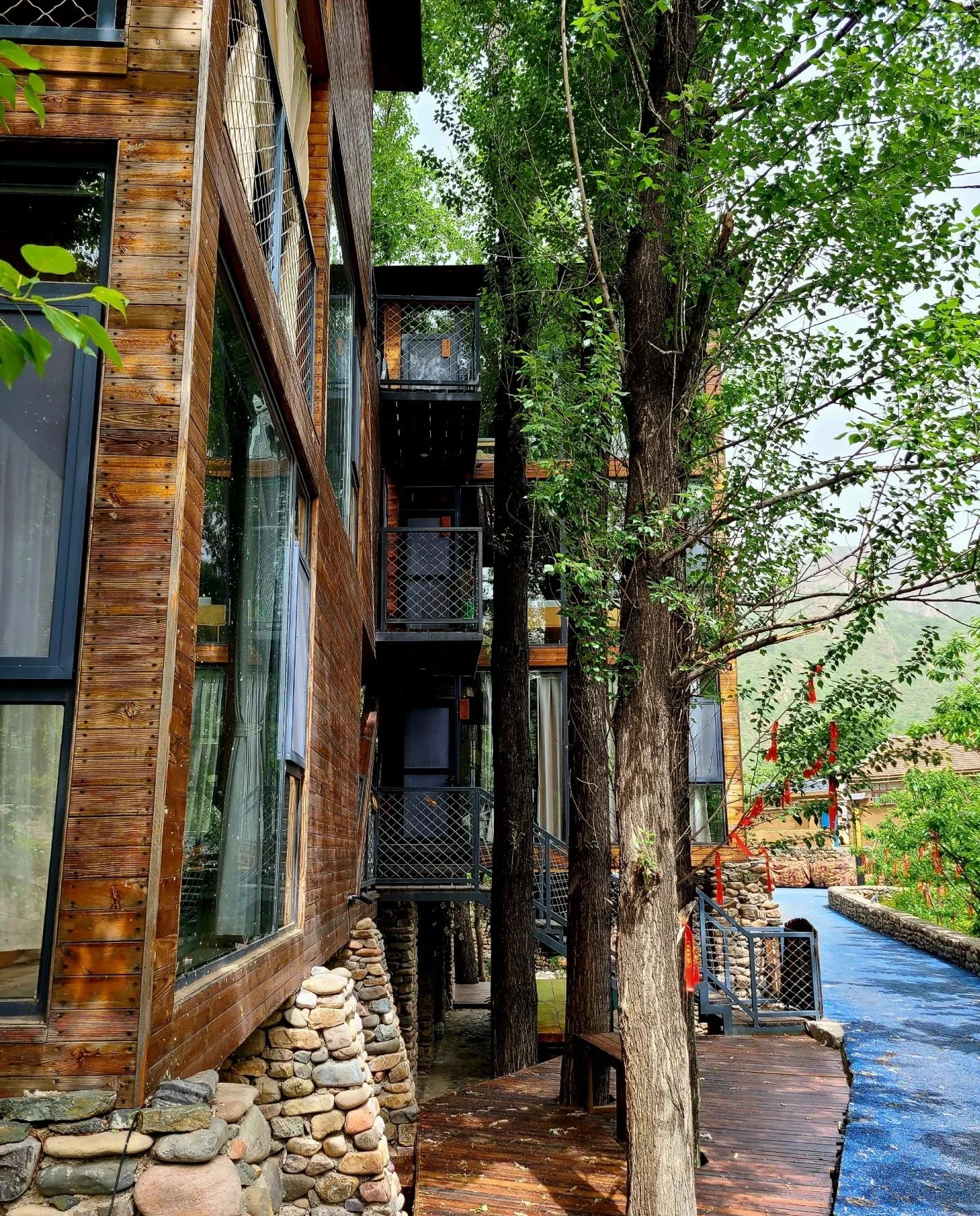 3. 第三家:沙石峪乡宿:在遵化市新店子镇,将红色文化与山居美学融合,有巨玫瑰·青石院、巨峰·千担院等9套风格各异的民宿小院。