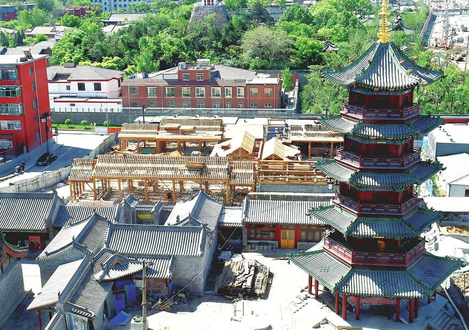 天王殿紧邻山门,单檐硬山顶形制简洁,殿内供奉弥勒佛、韦陀菩萨与四大天王造像。弥勒佛袒胸露腹、笑口常开,传递“大肚能容”的禅理;四大天王手持法器、神态威严,寓意“风调雨顺”;韦陀菩萨手持金刚杵,守护寺院清静。钟鼓楼分列山门两侧,二层阁楼式结构飞檐翘角,清晨与黄昏时,钟声悠扬、鼓声洪亮,回荡在并州街巷,传递祈福纳祥之意。