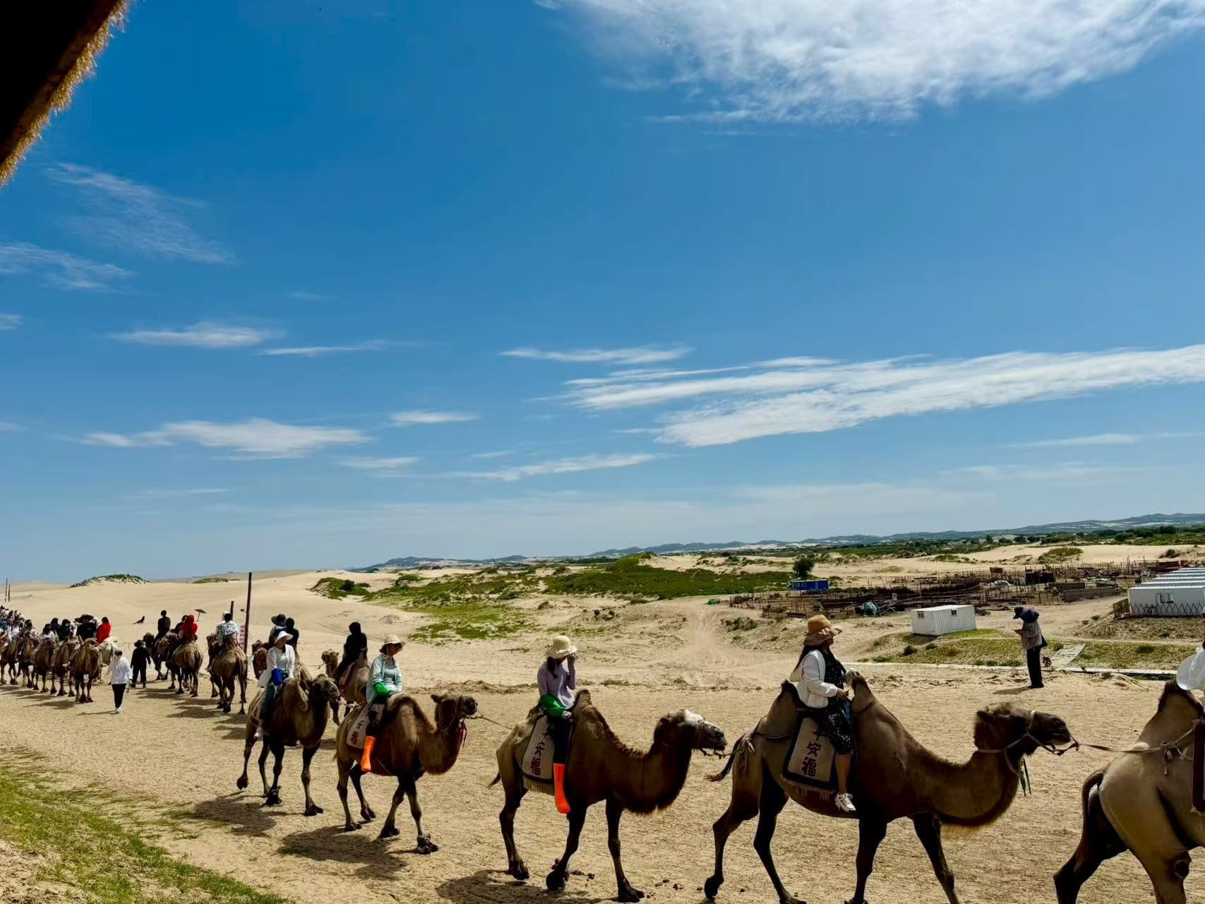 第四天 玉龙沙湖,景区门口打个卡,就不进去了。里面也没啥。开始在景区外面玩,骑骆驼,沙漠越野。沙漠越野是很刺激的,当然没有开凌云进去,进去也玩不好,指望这个车越野想都别想。600元大套餐,一家四口人,骑骆驼,沙漠越野都喊着。做的是景区自己的车,老款丰田霸道,v6款。内饰那个破的,得二十年的车龄了。